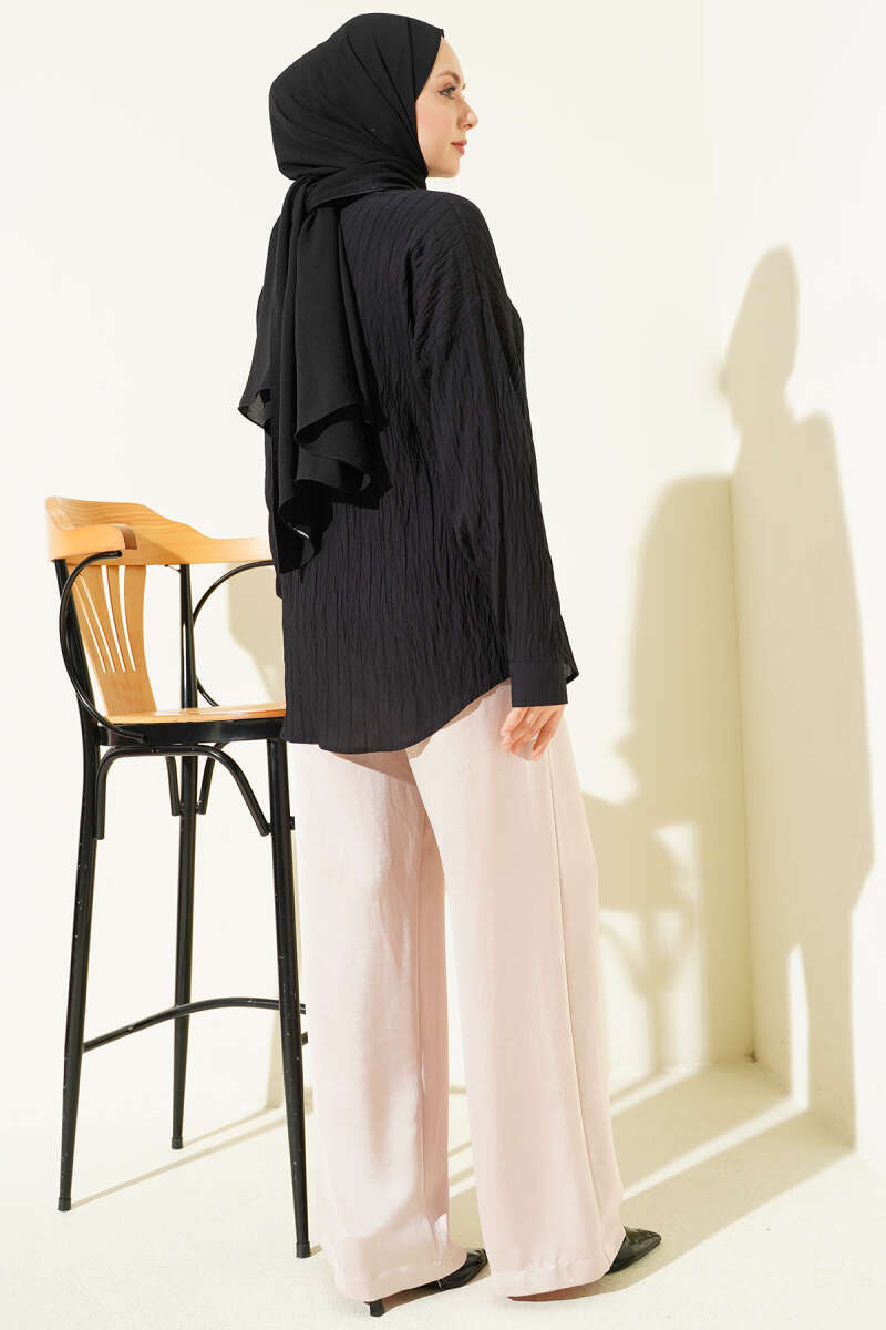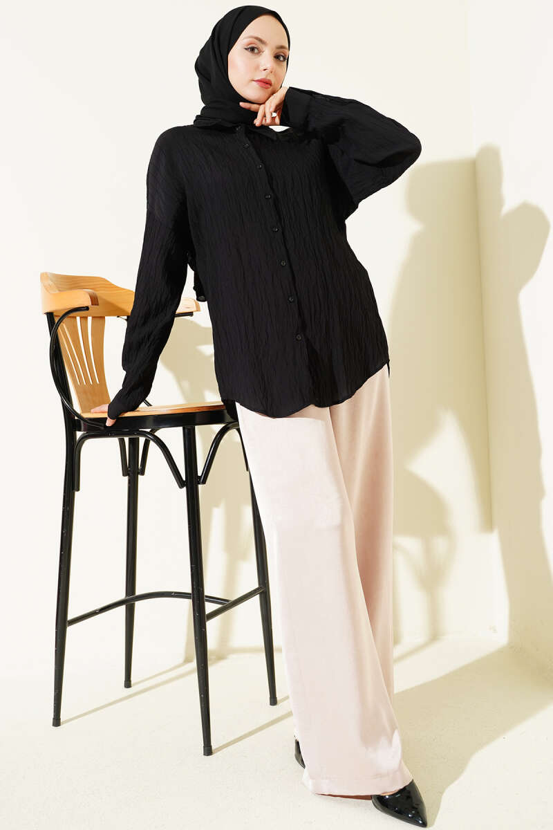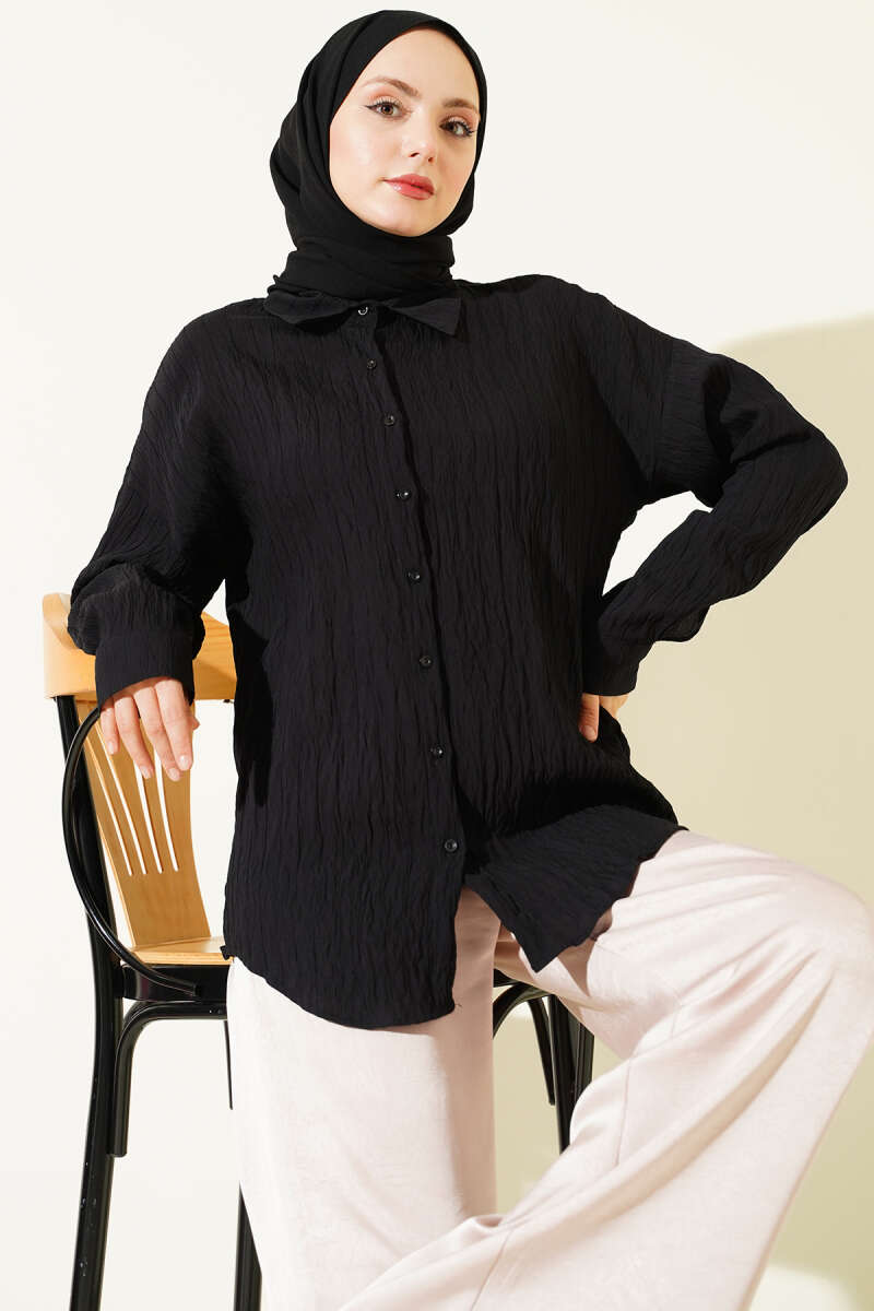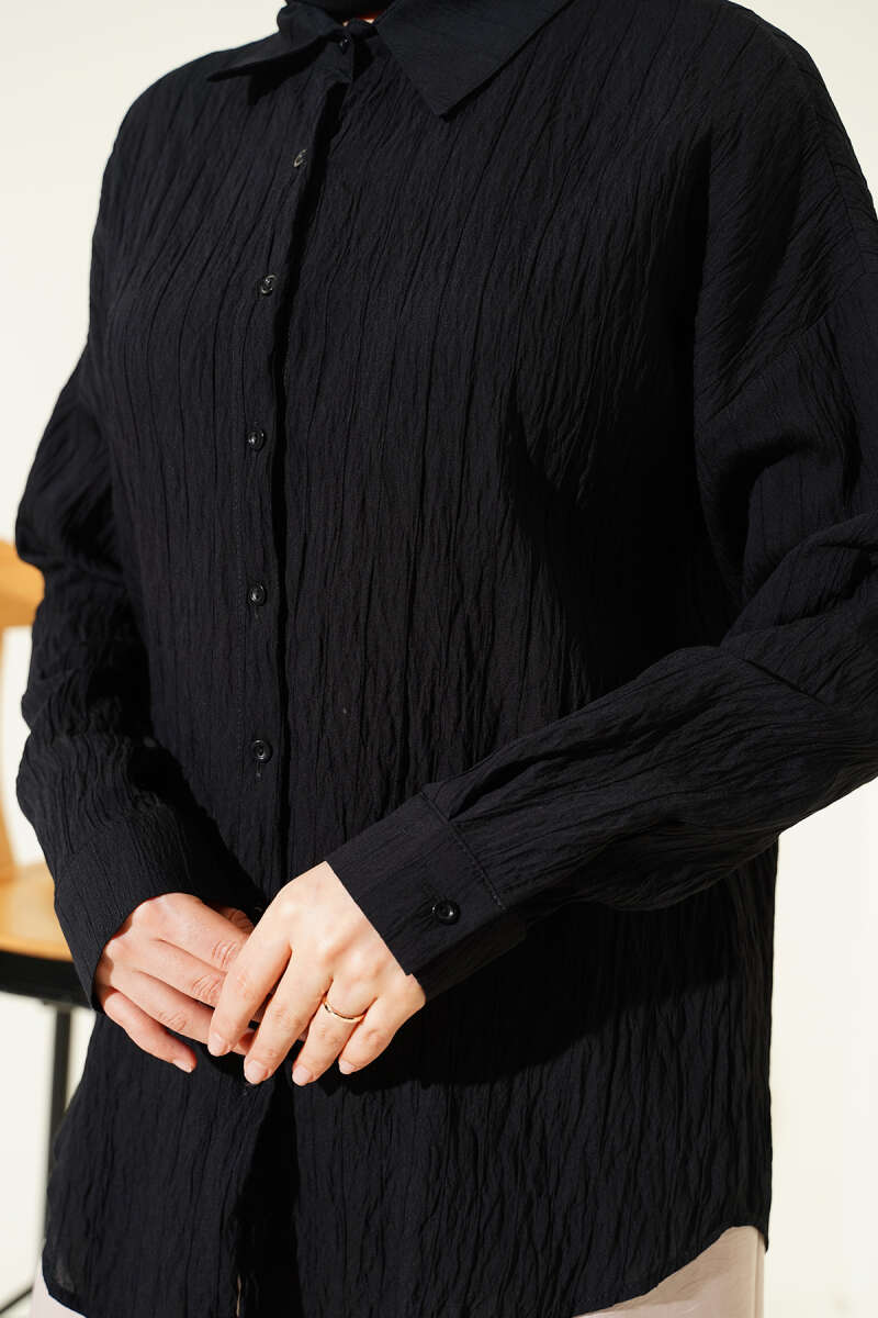 Geniş Kollu Oversize Uzun Gömlek Siyah