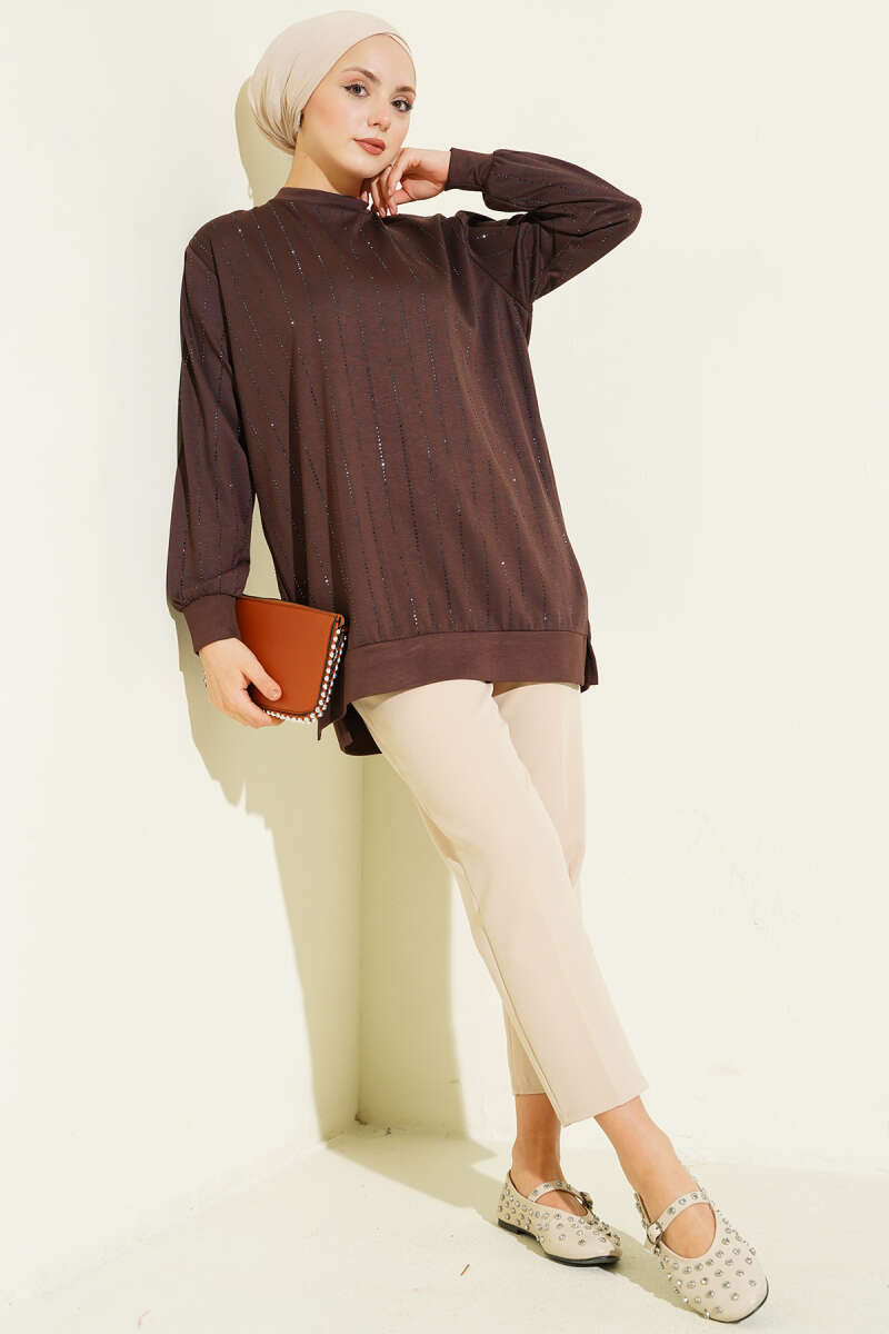 Dik Şerit Taşlı Loyşa Tunik Bordo