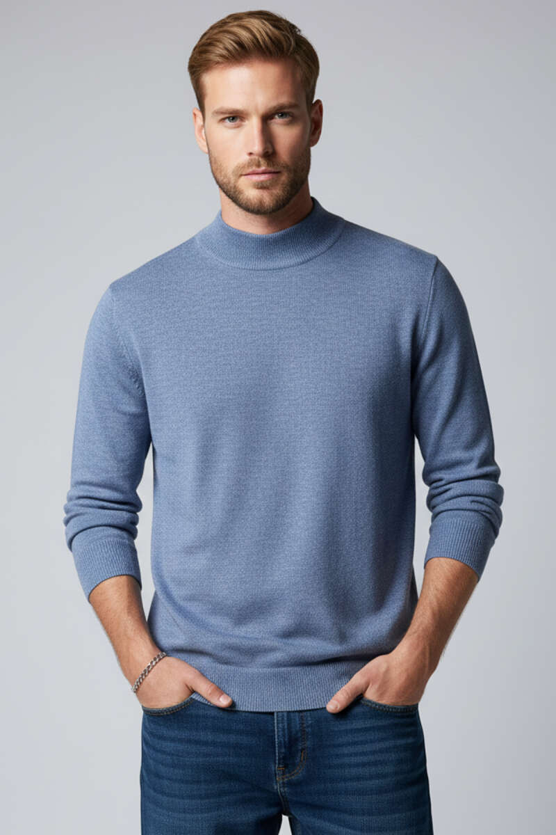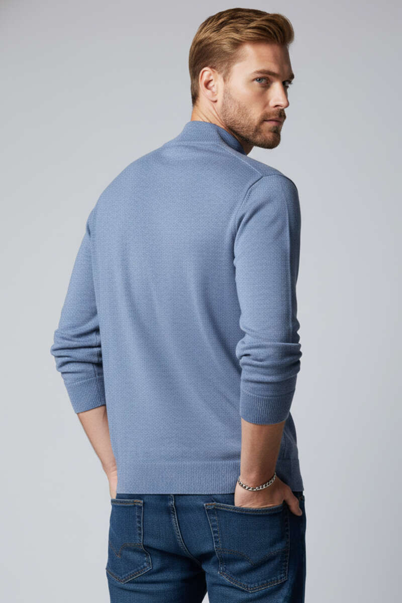 Dik Yaka Basic Erkek Triko Kazak Mavi