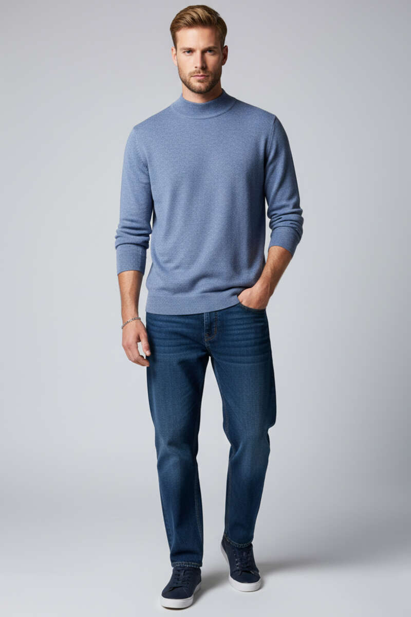 Dik Yaka Basic Erkek Triko Kazak İndigo