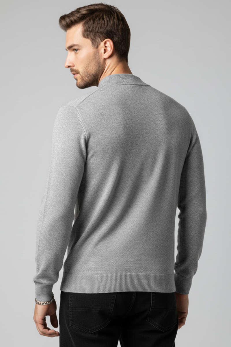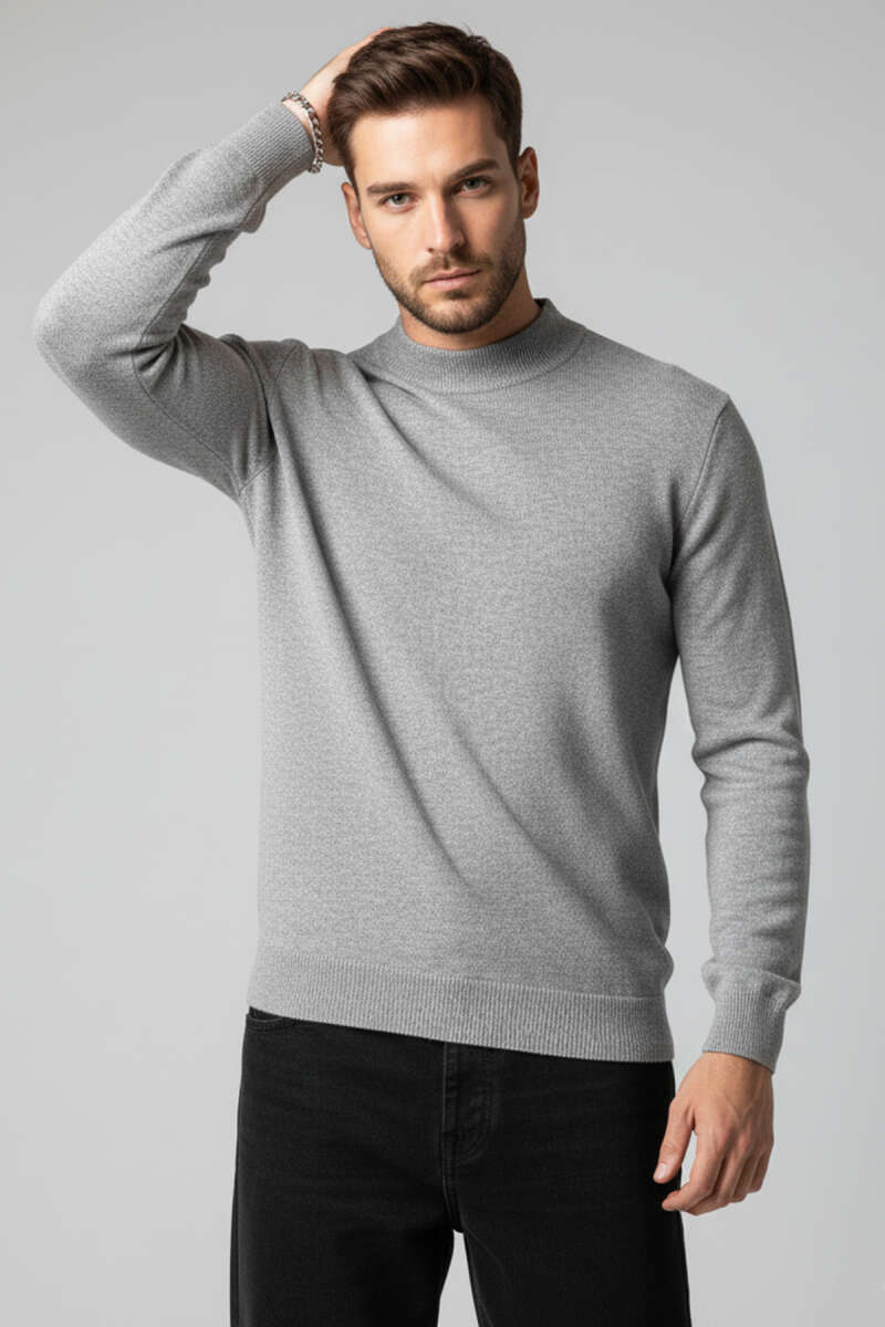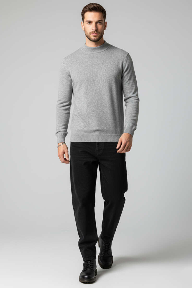 Dik Yaka Basic Erkek Yün Kazak Siyah