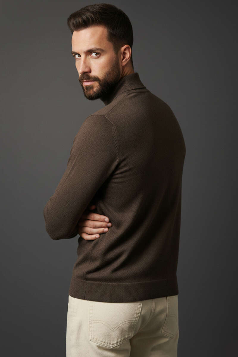 Dik Yaka Basic Erkek Yün Kazak Haki