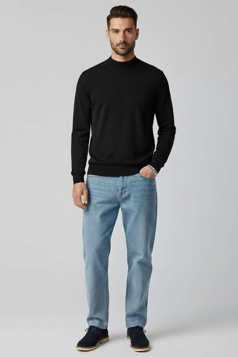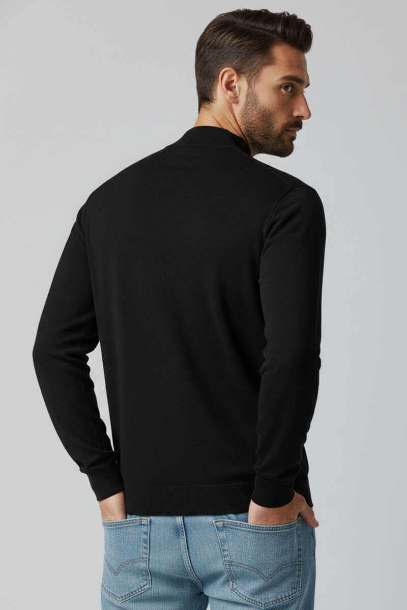 Dik Yaka Basic Erkek Yün Kazak Siyah