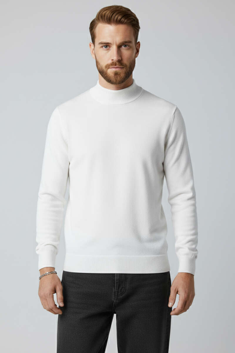 Dik Yaka Basic Triko Erkek Kazak Beyaz