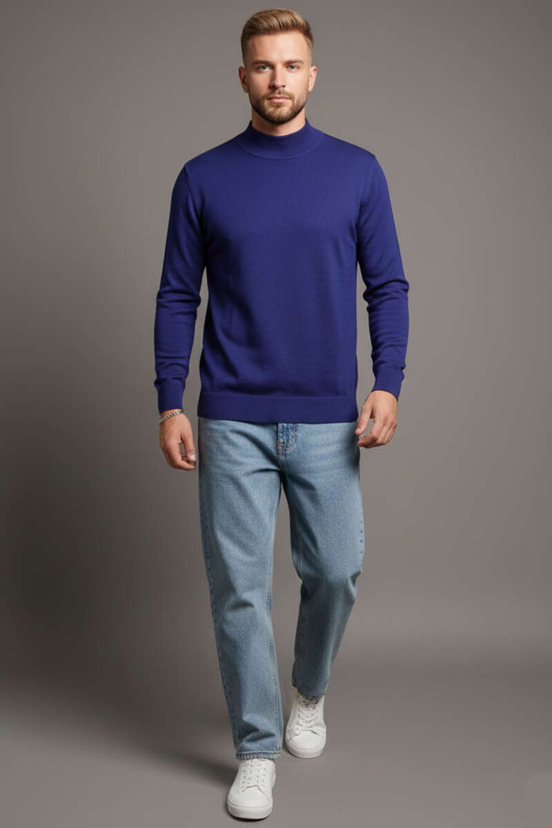 Dik Yaka Basic Triko Erkek Kazak Lacivert
