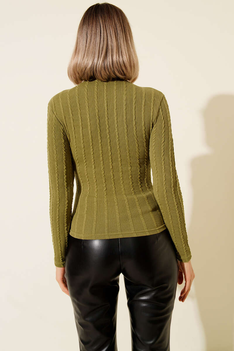 Yarım Boğazlı Fitilli Triko İkili Takım Kahve