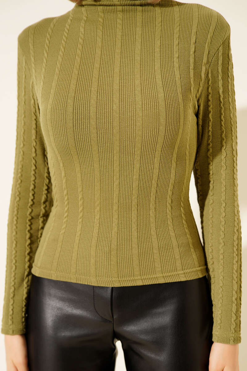 Yarım Boğazlı Fitilli Triko İkili Takım Bej