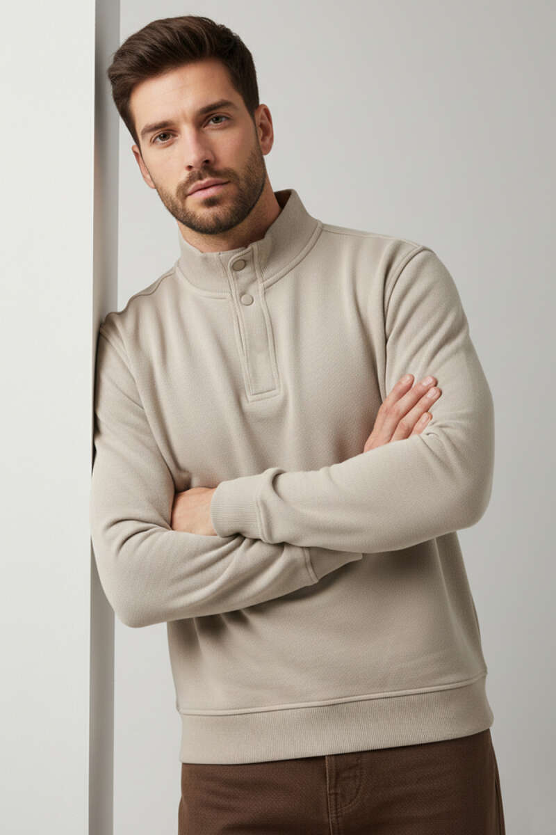 Dik Yaka Çıtçıtlı Erkek Sweatshirt Nefti