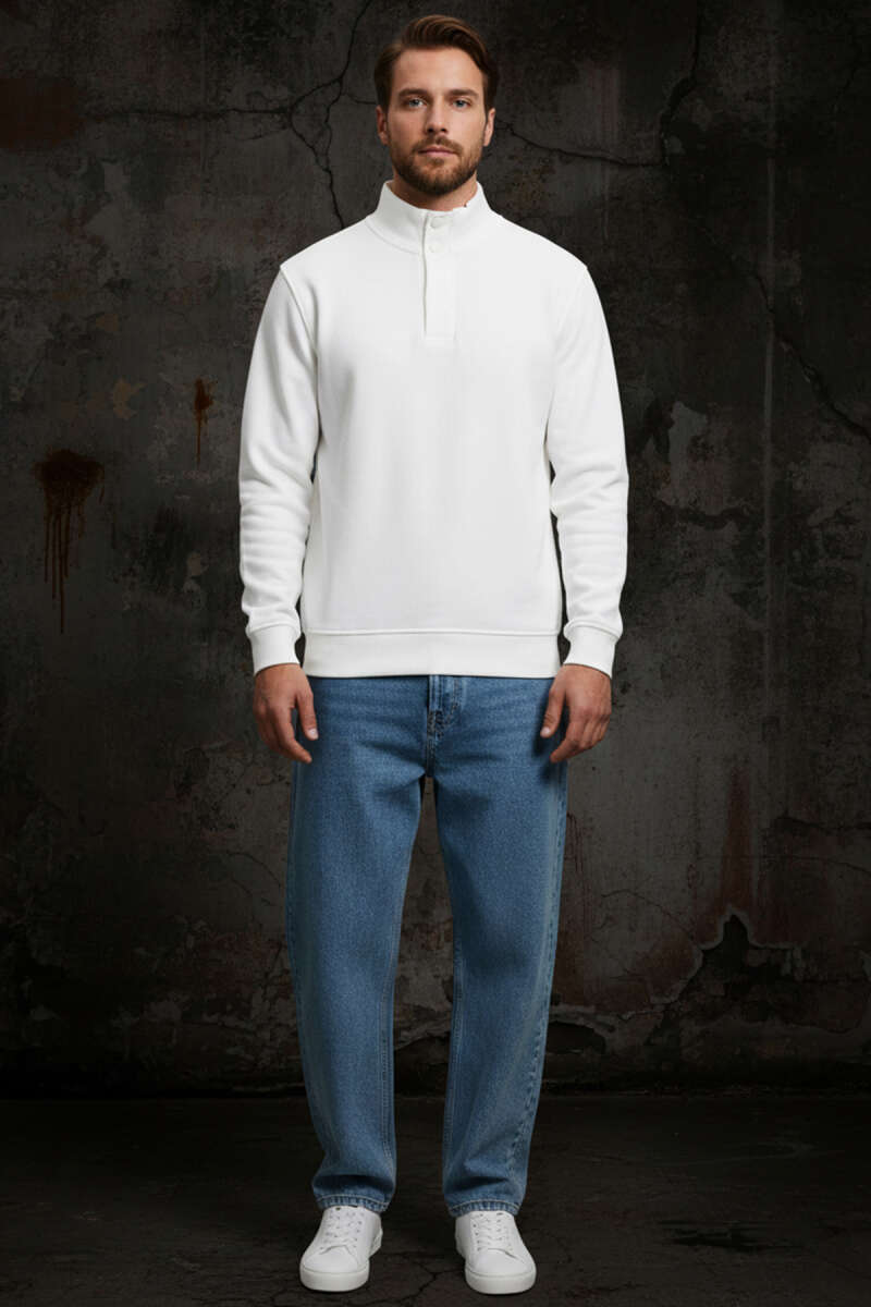 Dik Yaka Çıtçıtlı Erkek Sweatshirt Nefti