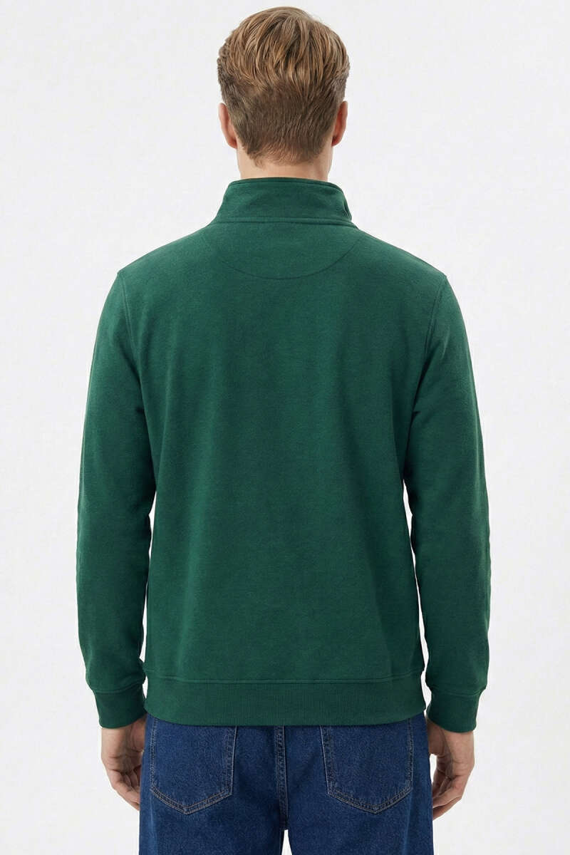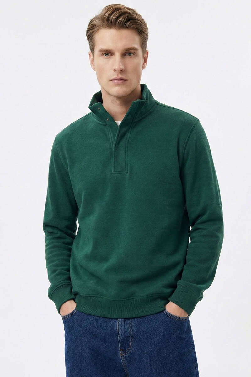 Loyşa Kumaş Yarım Fermuar Erkek Sweatshirt Nefti