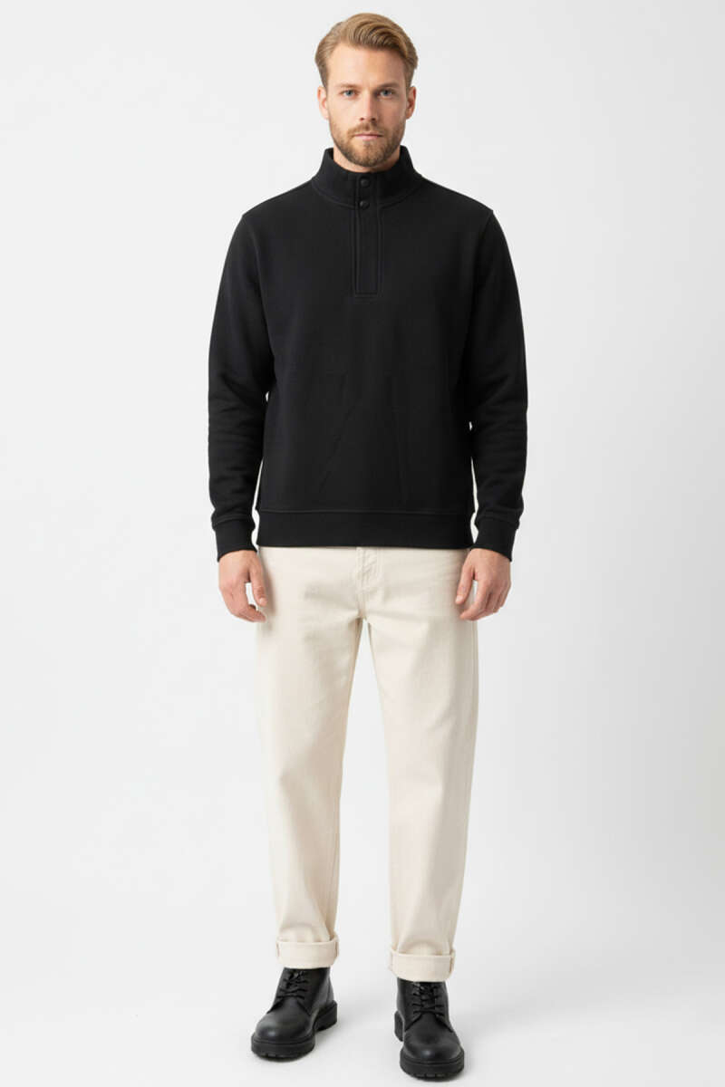 Dik Yaka Çıtçıtlı Erkek Sweatshirt Nefti