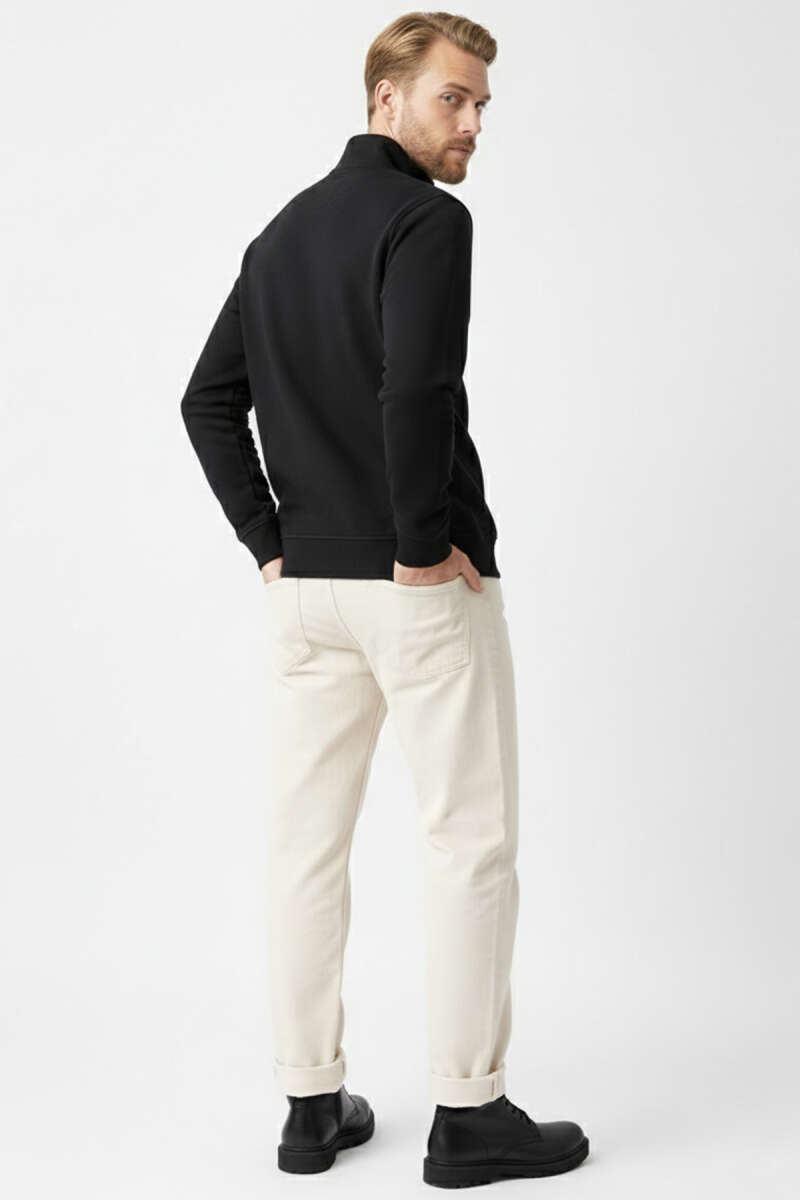 Polo Yaka Fermuarlı Basic Erkek Sweatshirt Siyah