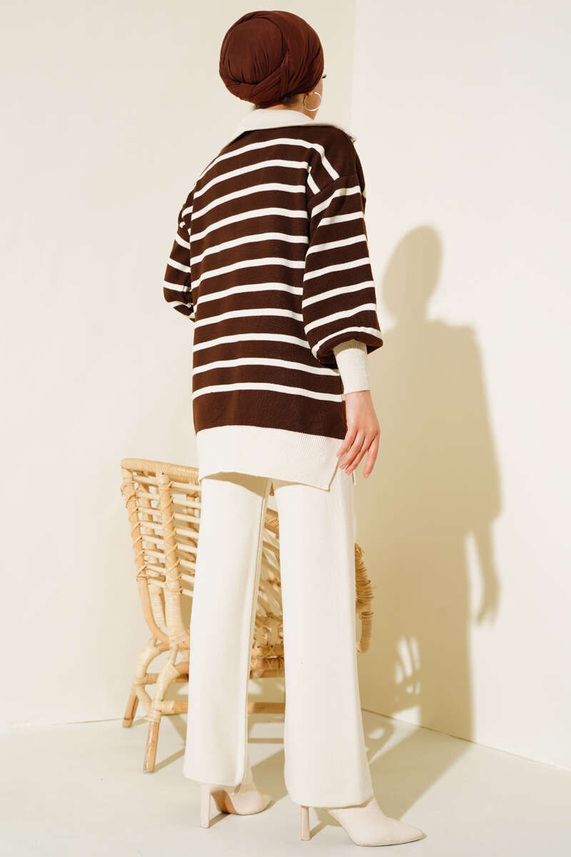 Yeni sezon ikili takımımız soğuk havalarda favoriniz olacak. Tuniğimiz dik yaka model olup yakası fermuarlıdır. Geniş koldur. Bilekleri esnek tuniğimizin etek uçları yırtmaçlıdır. Üzerindeki çizgi detayları tuniğimize hareket katmaktadır. Pantolonumuzun beli lastikli, salaş modeldir. Cepsizdir. Birbirinden güzel renk seçenekleriyle dolaplarınızda yerlerini beklemekte.