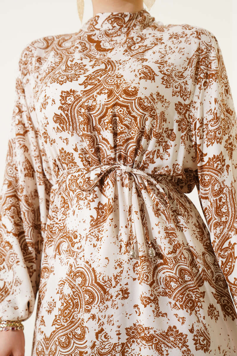 Kuşaklı Pul Payet Detaylı Abiye Elbise Kahverengi