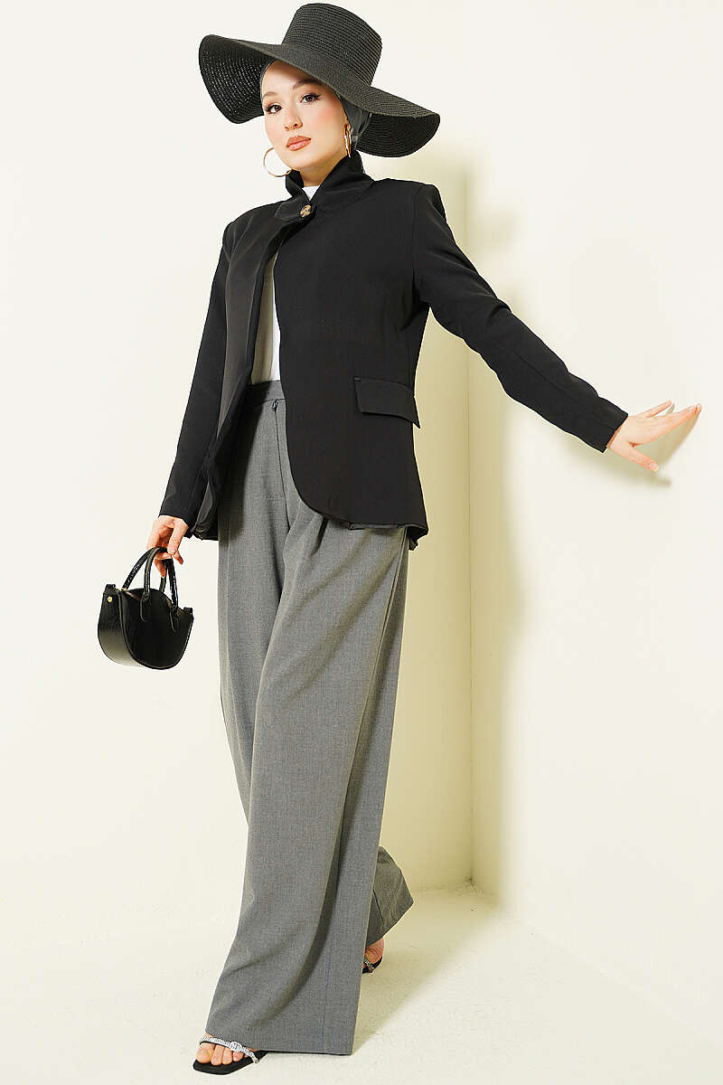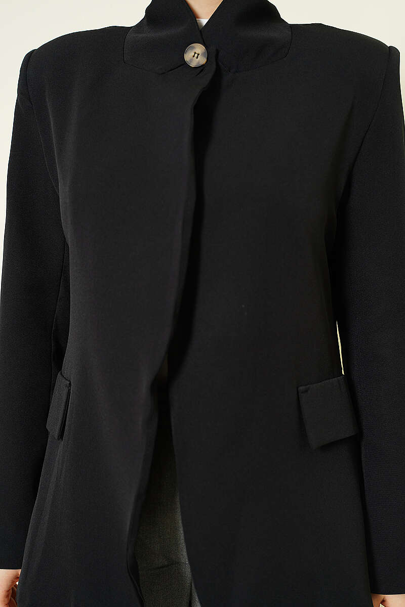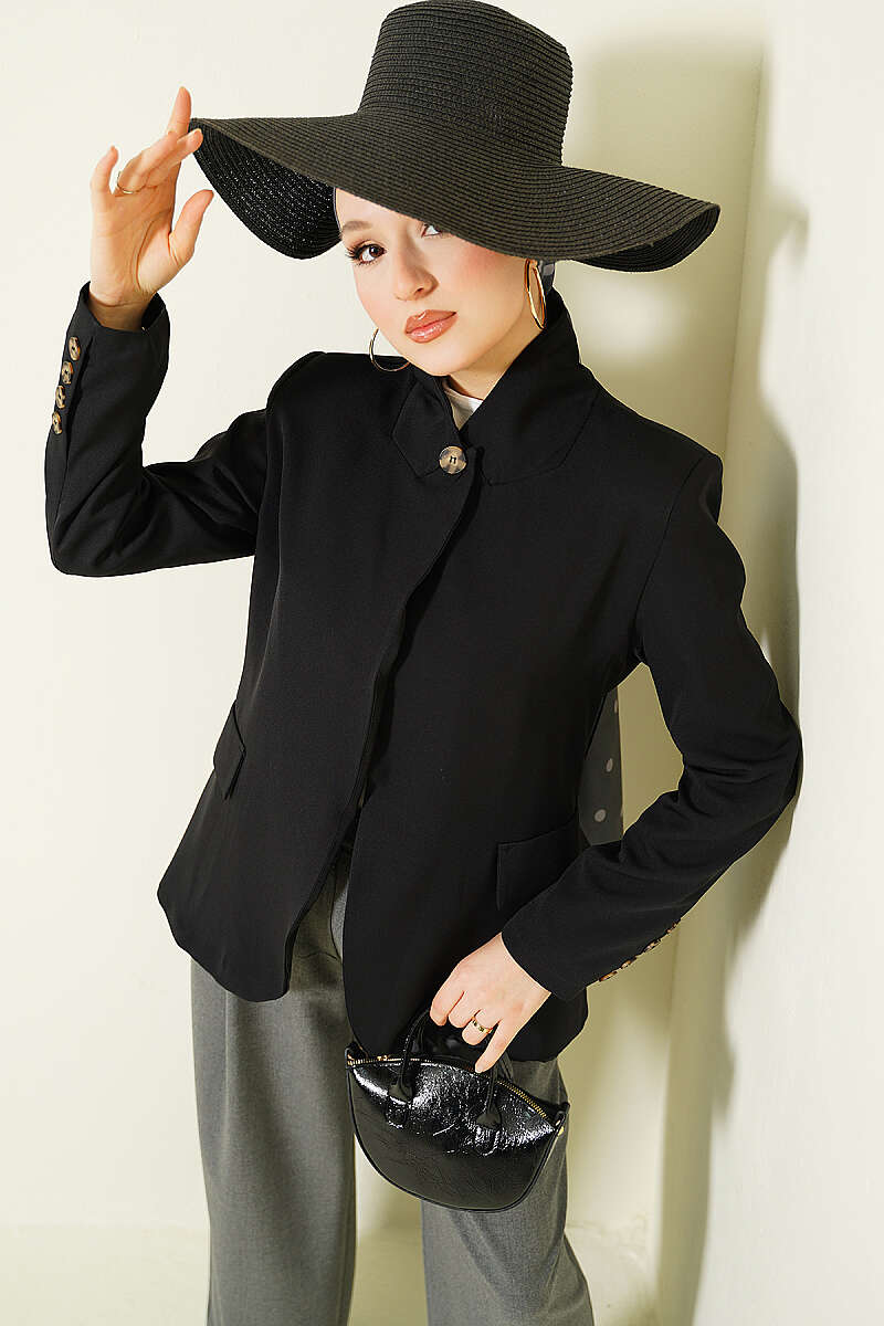 Dik Yaka Düğmeli Blazer Ceket Siyah