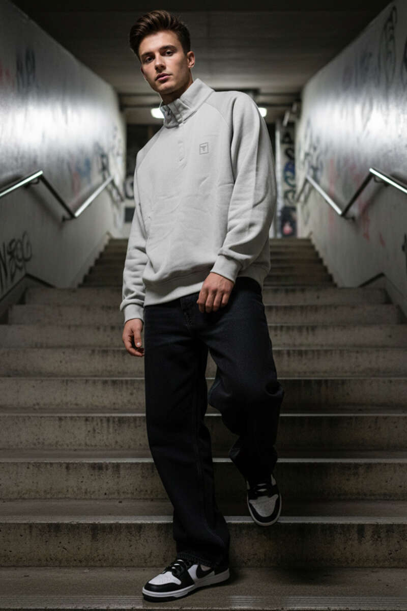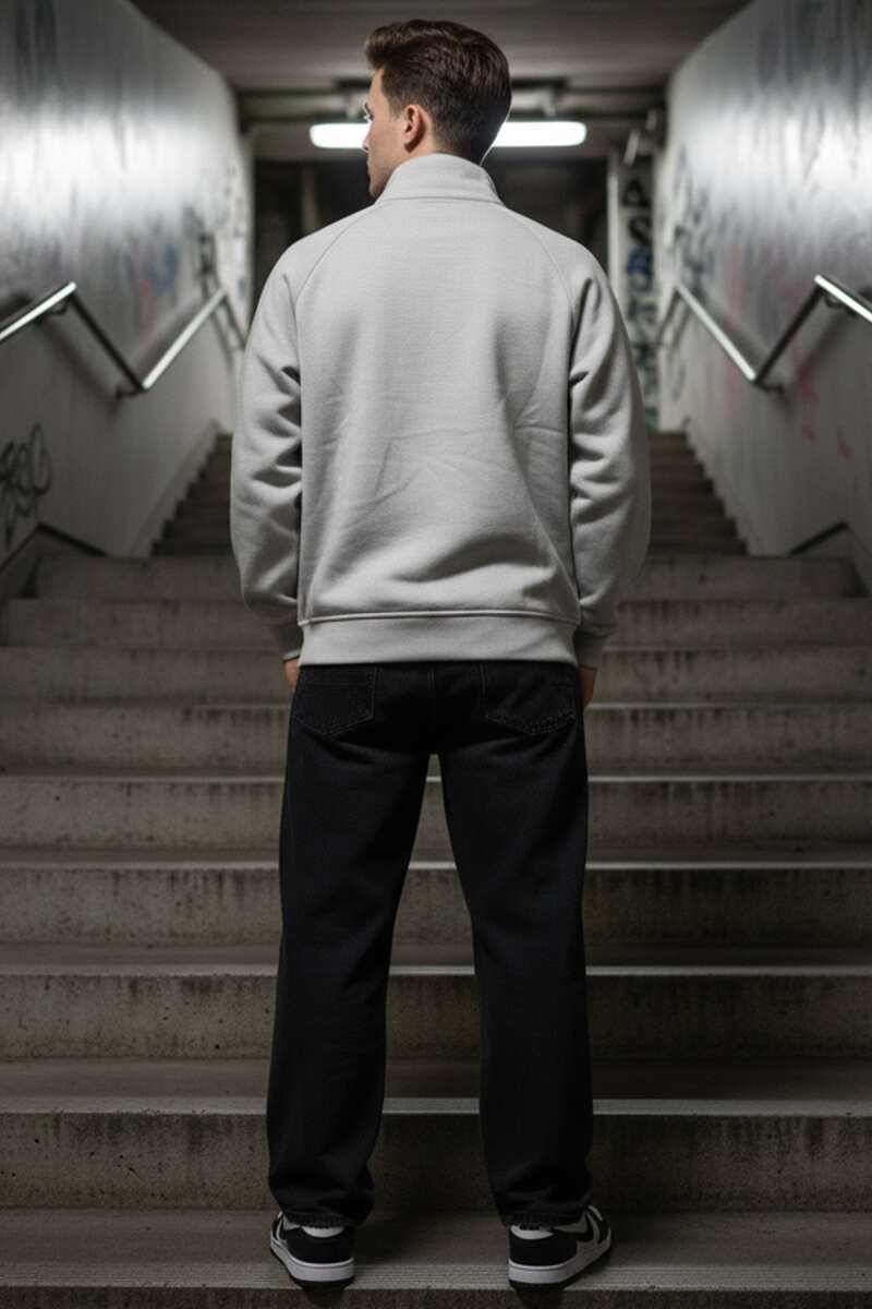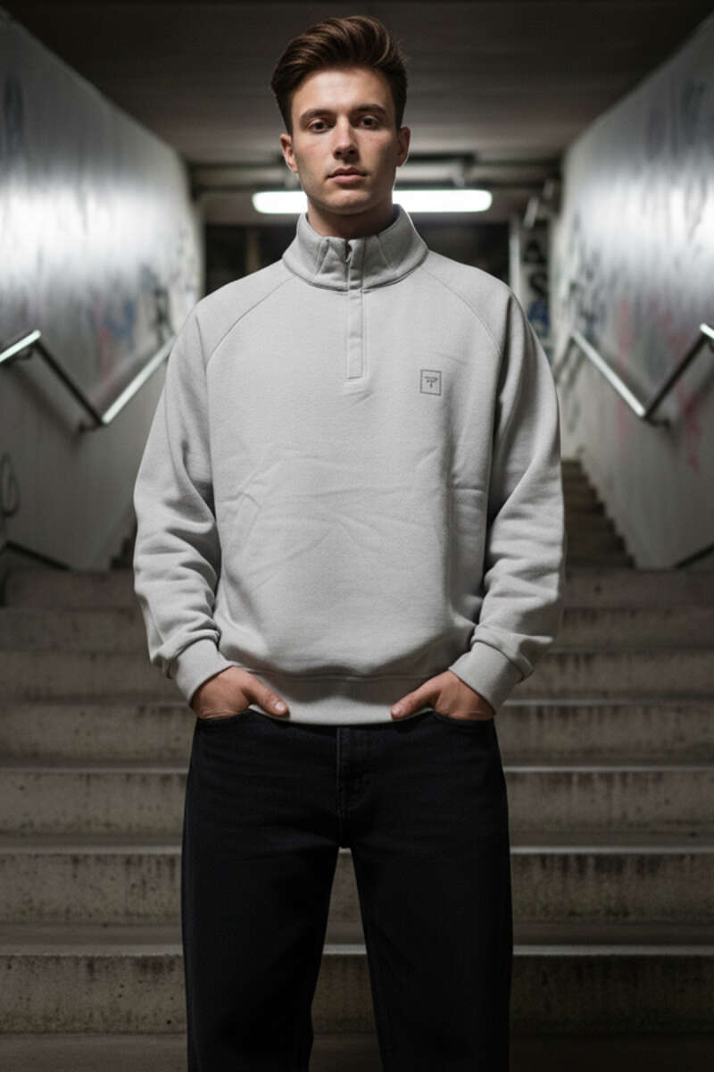 Dik Yaka Fermuarlı Erkek Sweatshirt Gri
