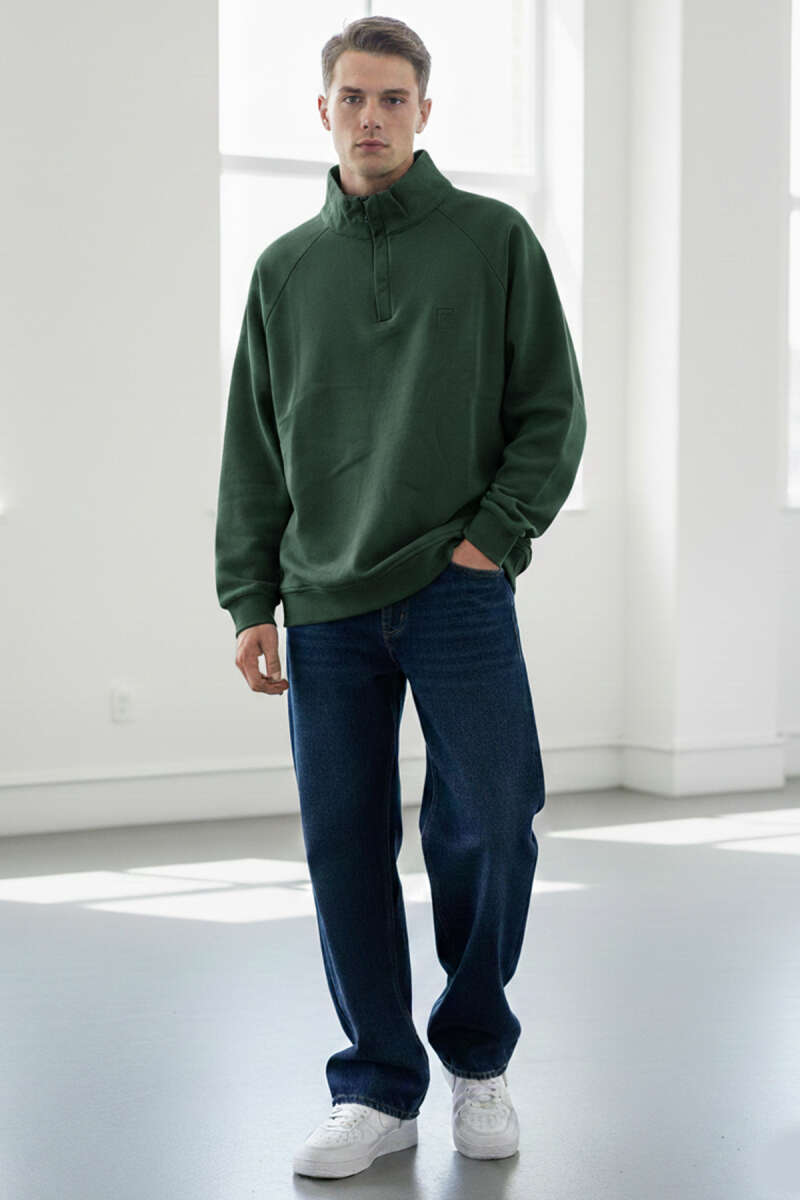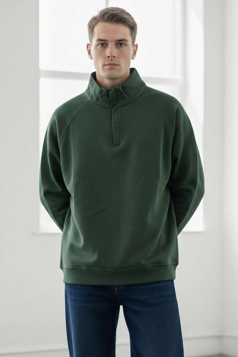 Dik Yaka Fermuarlı Erkek Sweatshirt Nefti