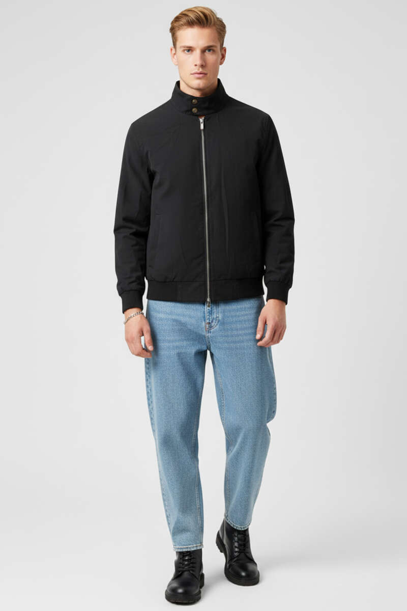 Fermuarlı Çıtçıtlı Erkek Mont Siyah