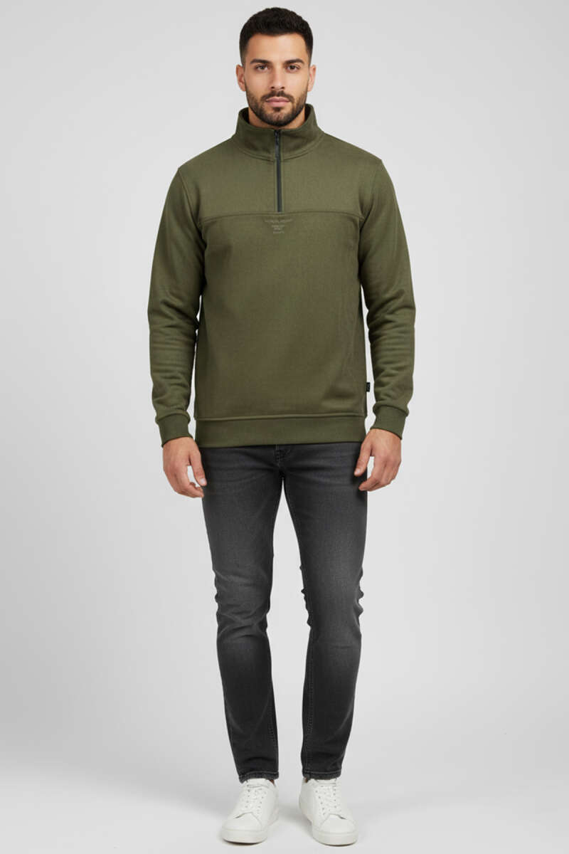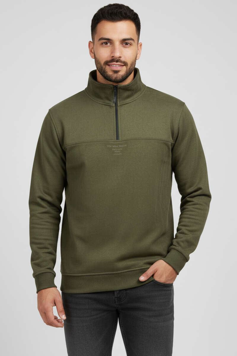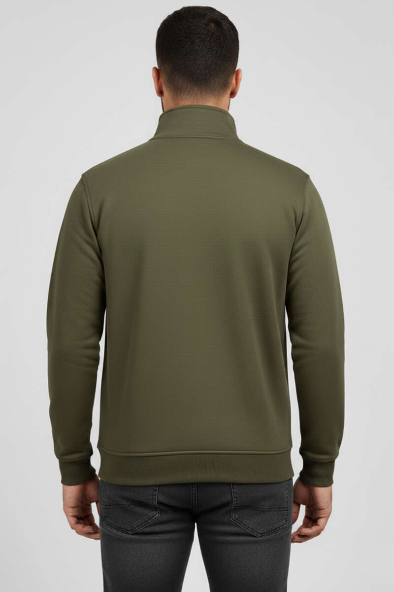 Dik Yaka Fermuarlı Süet Erkek Kazak Taş