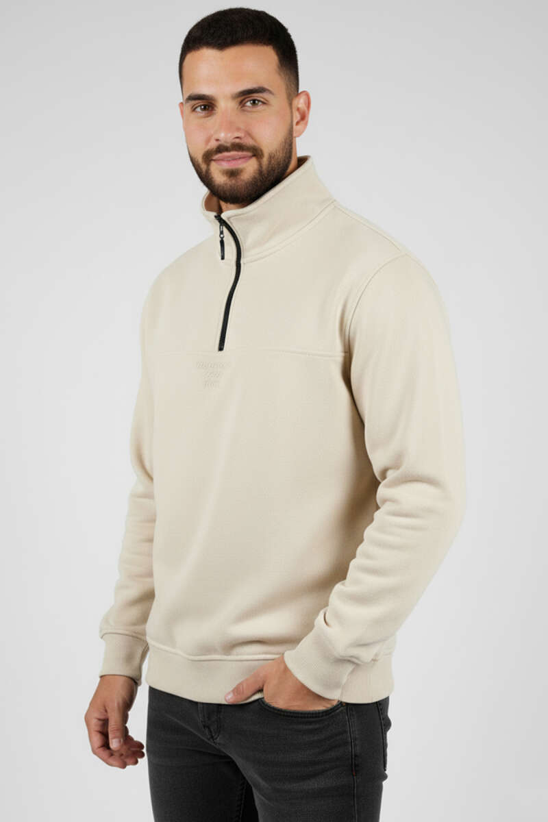 Dik Yaka Fermuarlı Süet Erkek Kazak Haki