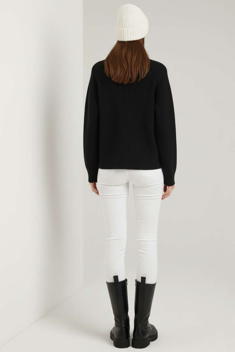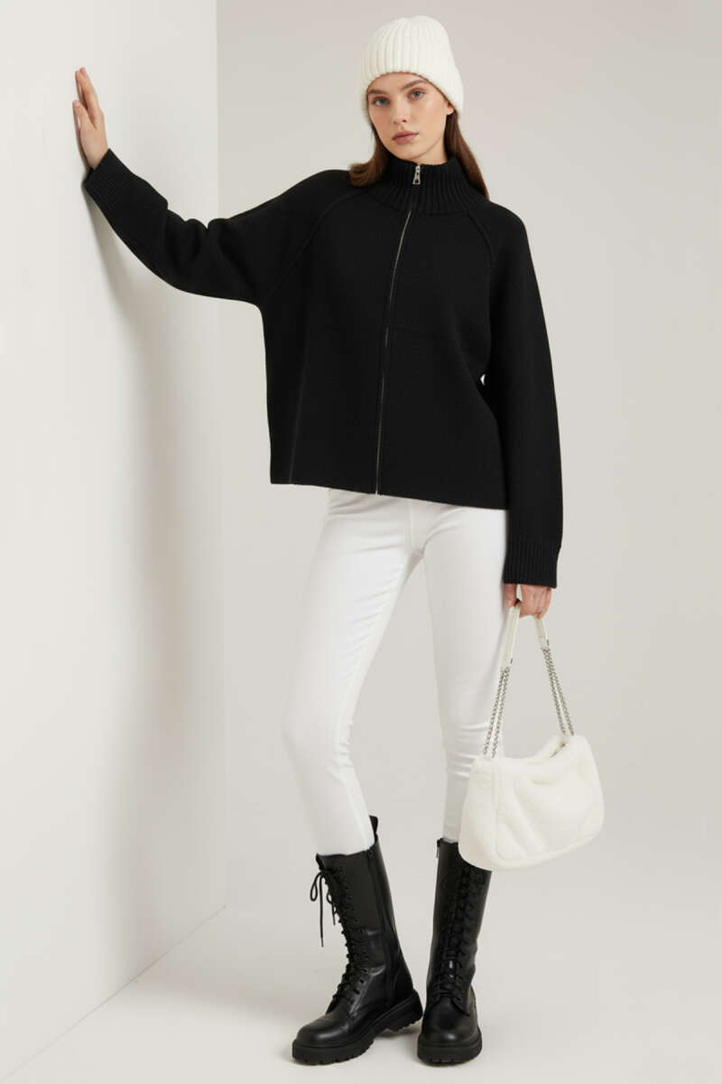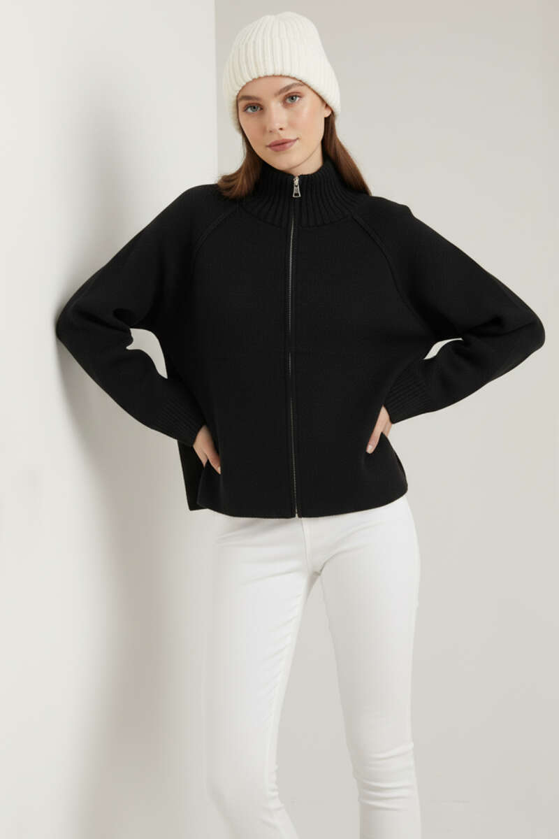 Dik Yaka Fermuarlı Triko Hırka Siyah