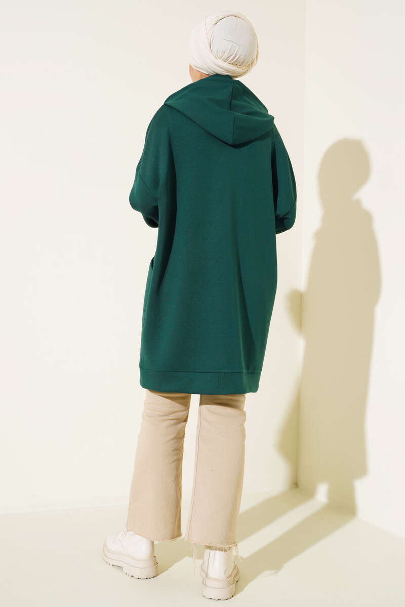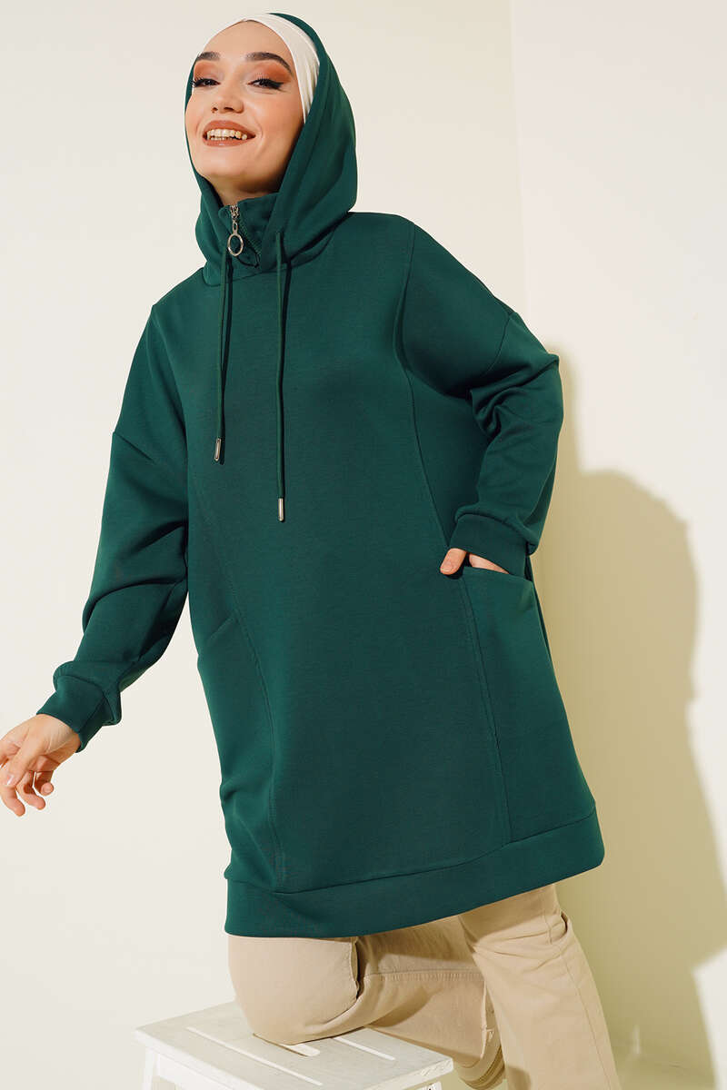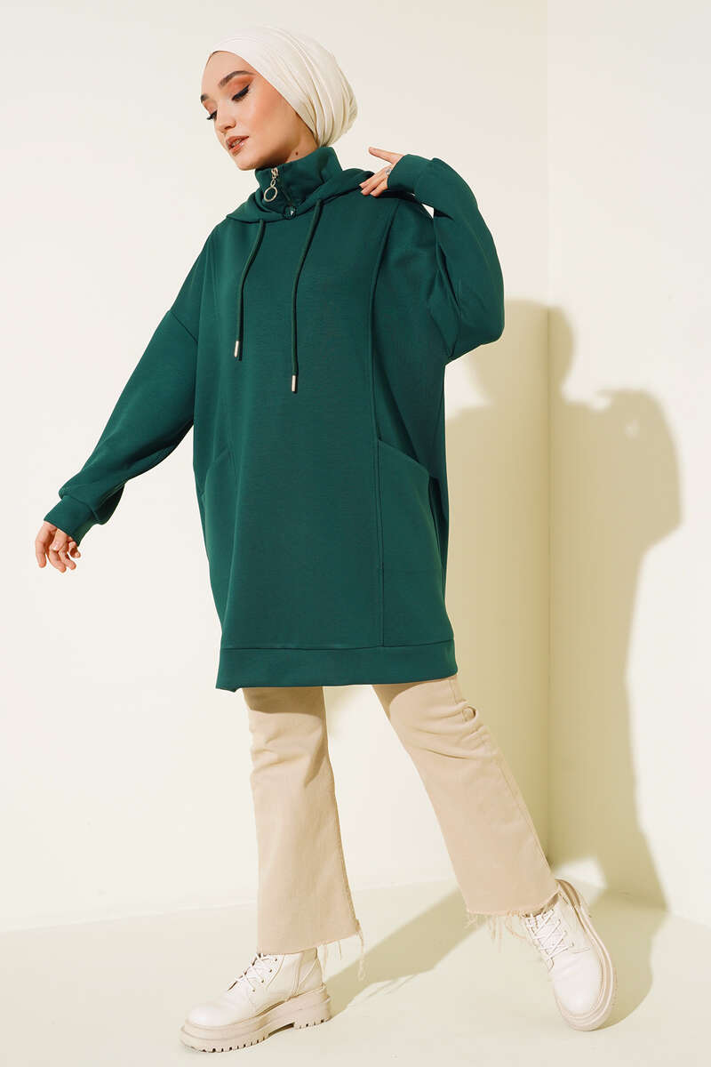 Dik Yaka Fermuarlı Tunik Zümrüt Yeşili
