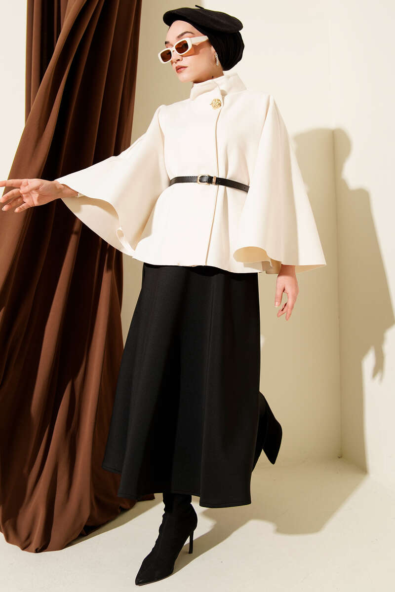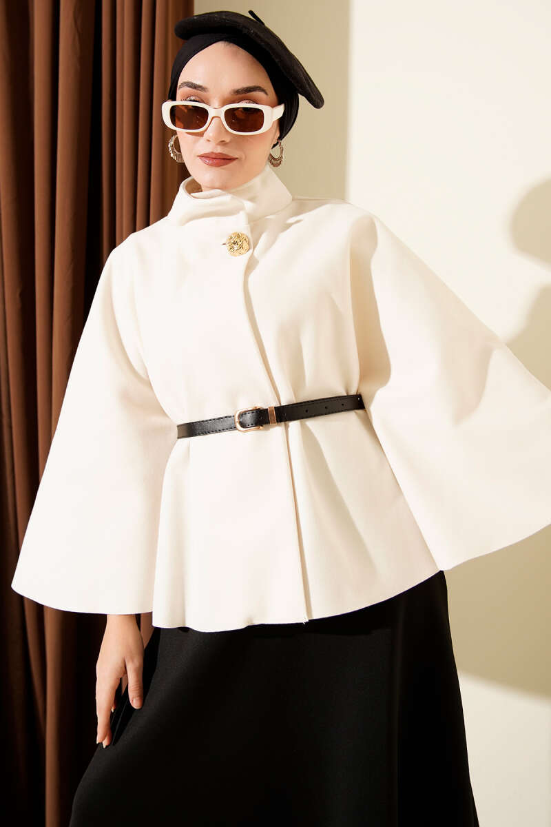 Hakim Yaka Kuşaklı Kaşe Panço Camel