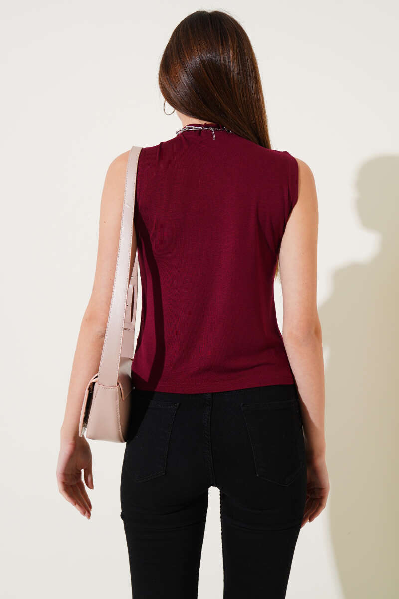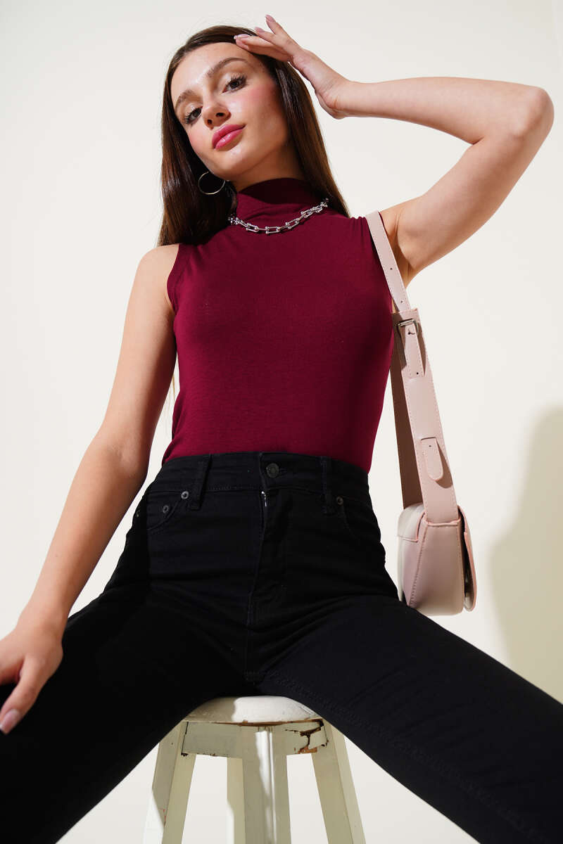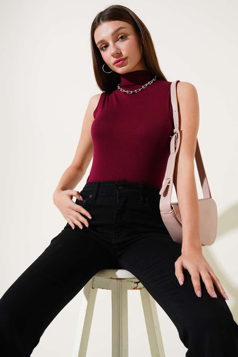 Uzun Kollu Yarım Fermuarlı Bluz Bordo