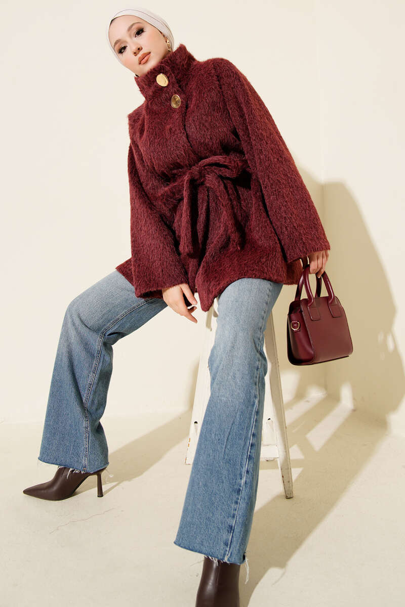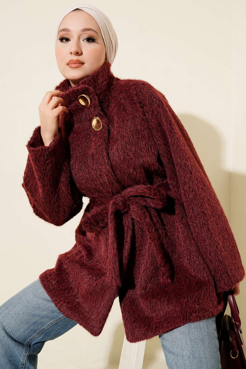 Yarım Balıkçı Yaka Gold Düğmeli Ceket Bordo