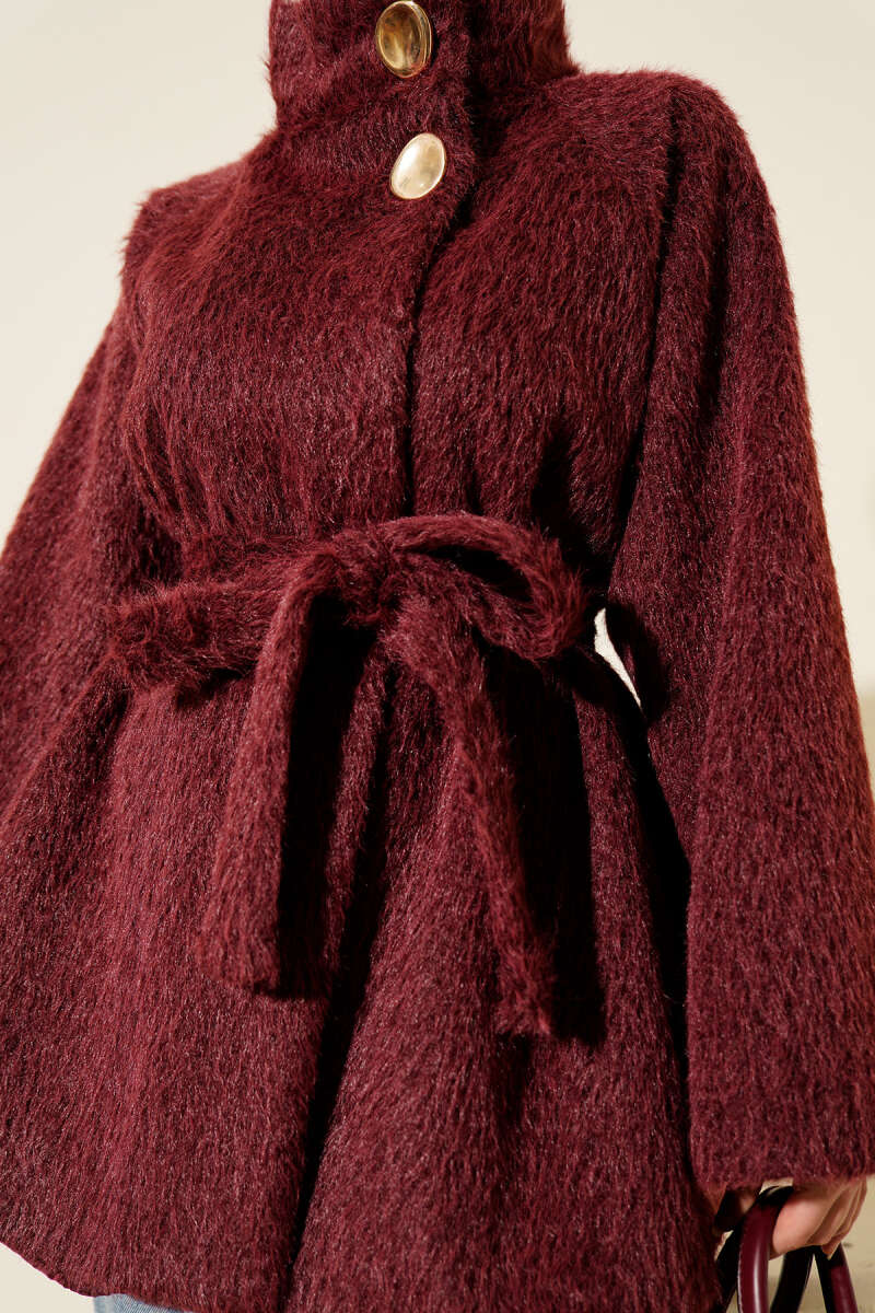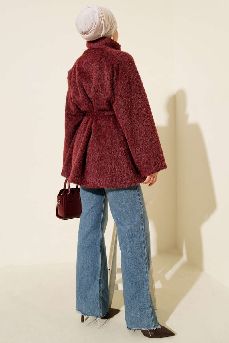 Dik Yaka Kuşaklı Sakallı Ceket Kahve