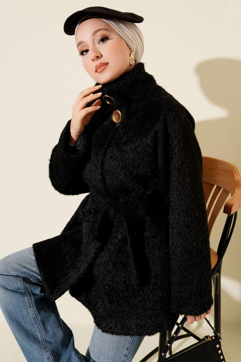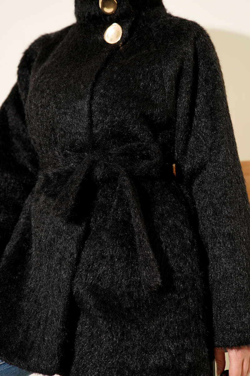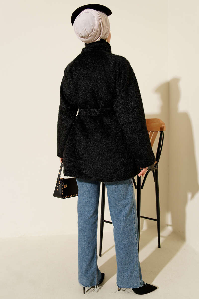 Yarasa Kol Kemerli Buklet Ceket Vizon