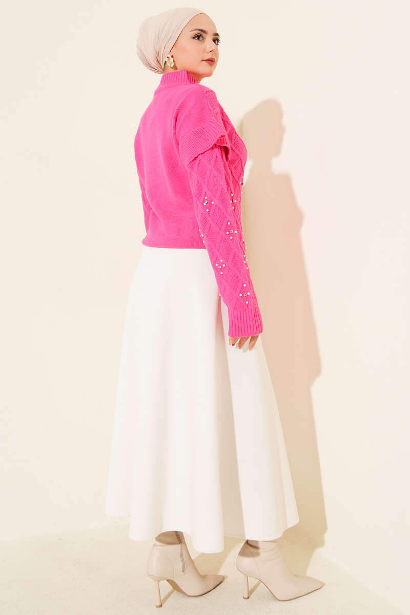 Bisiklet Yaka Örme Triko Erkek Kazak Ekru