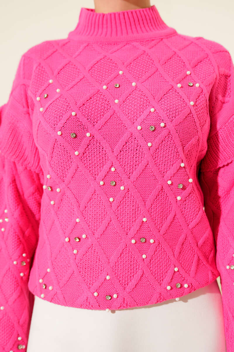 Zigzag Desenli Düğmeli Merserize Hırka Mürdüm