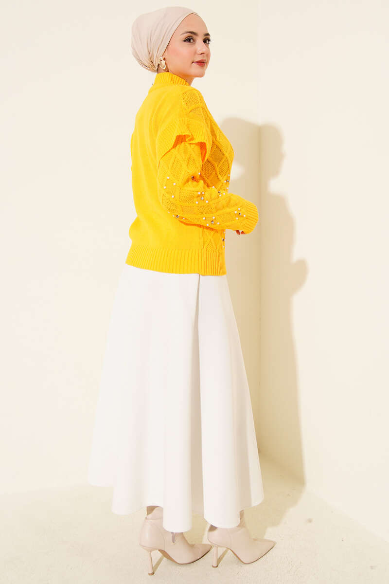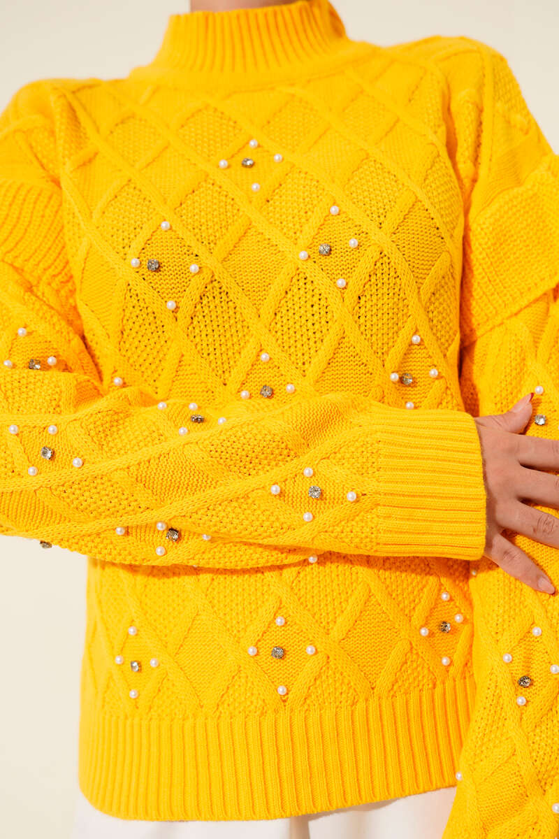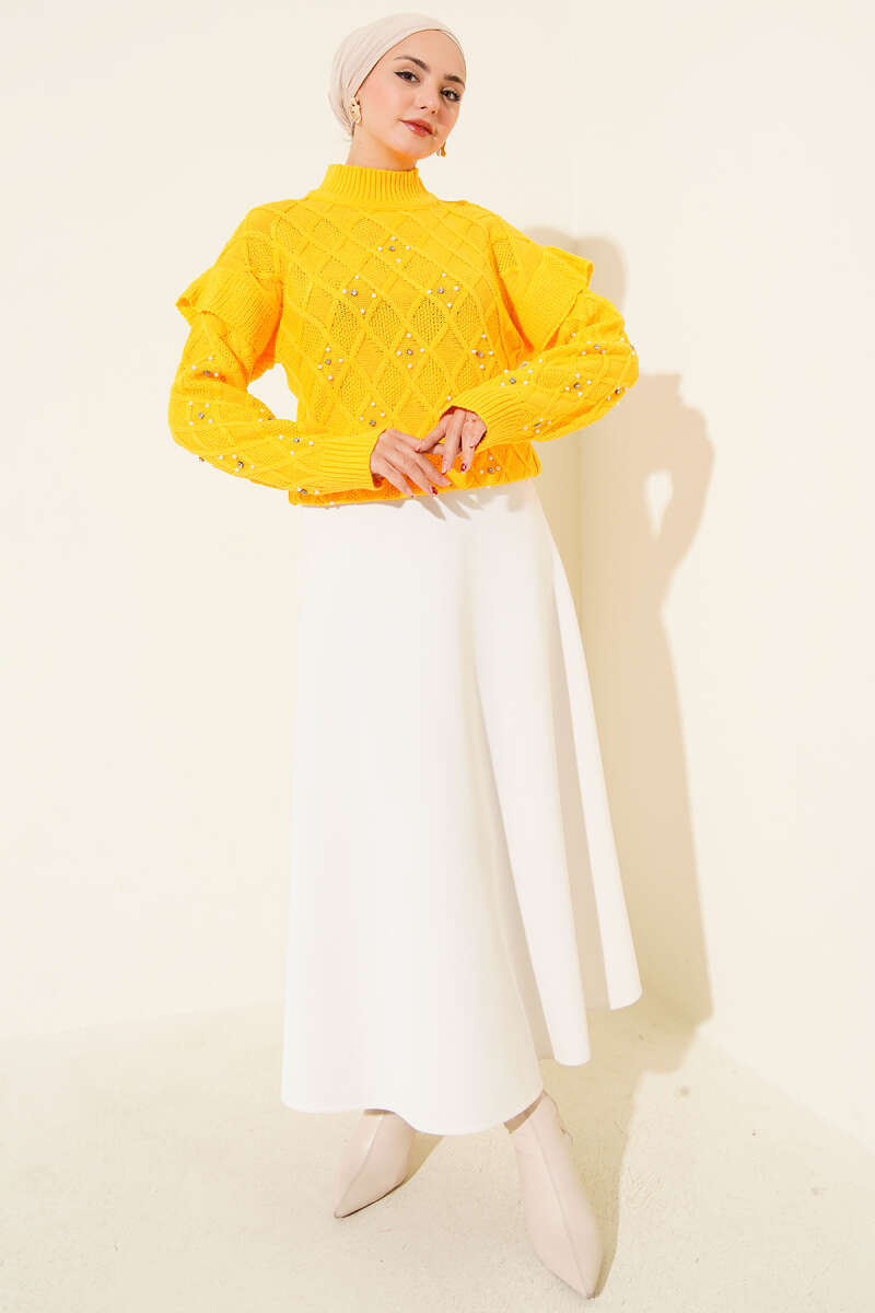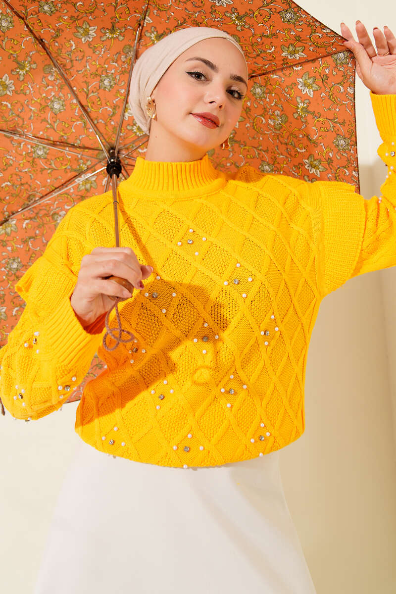 Zikzak Desen Ajurlu Triko Kazak Kahve