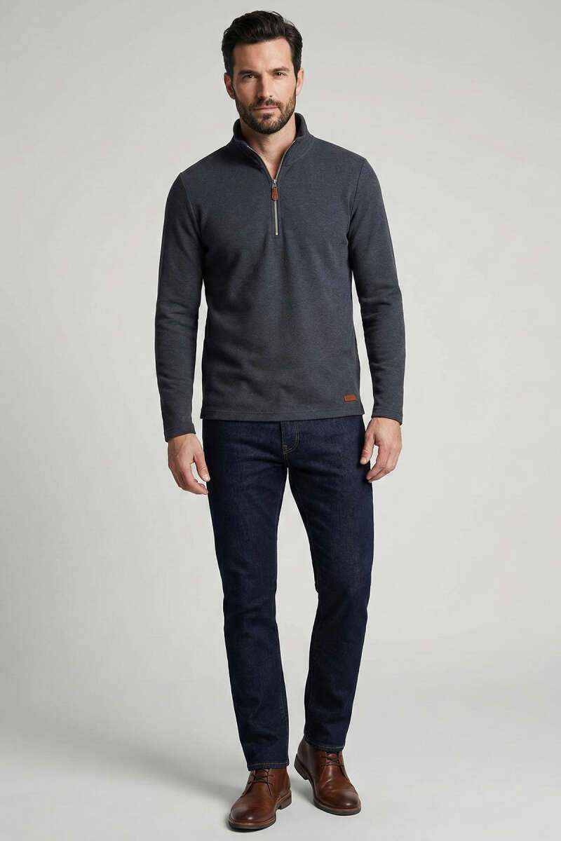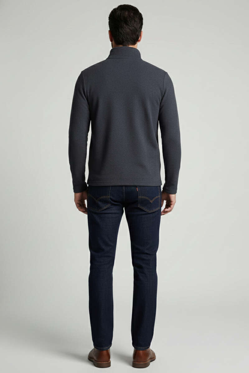 Dik Yaka Yarım Fermuar Erkek Sweatshirt Füme
