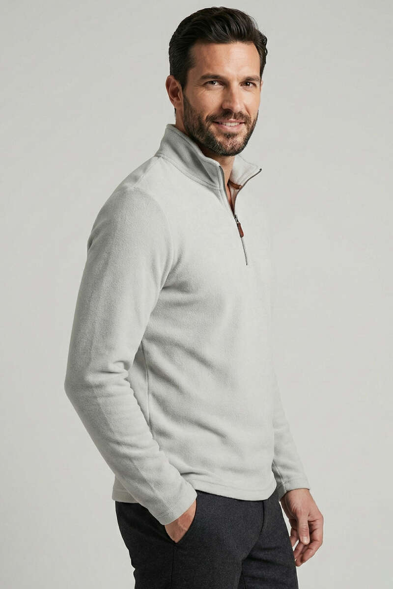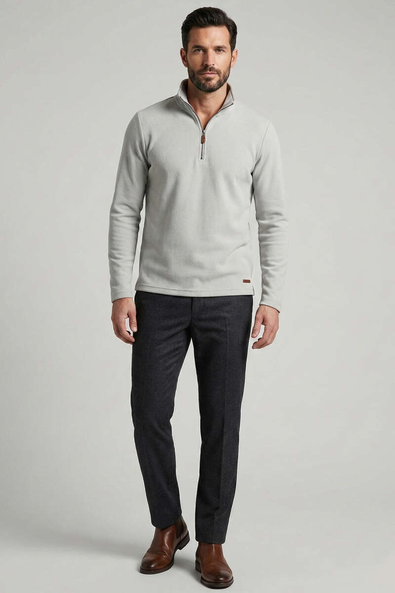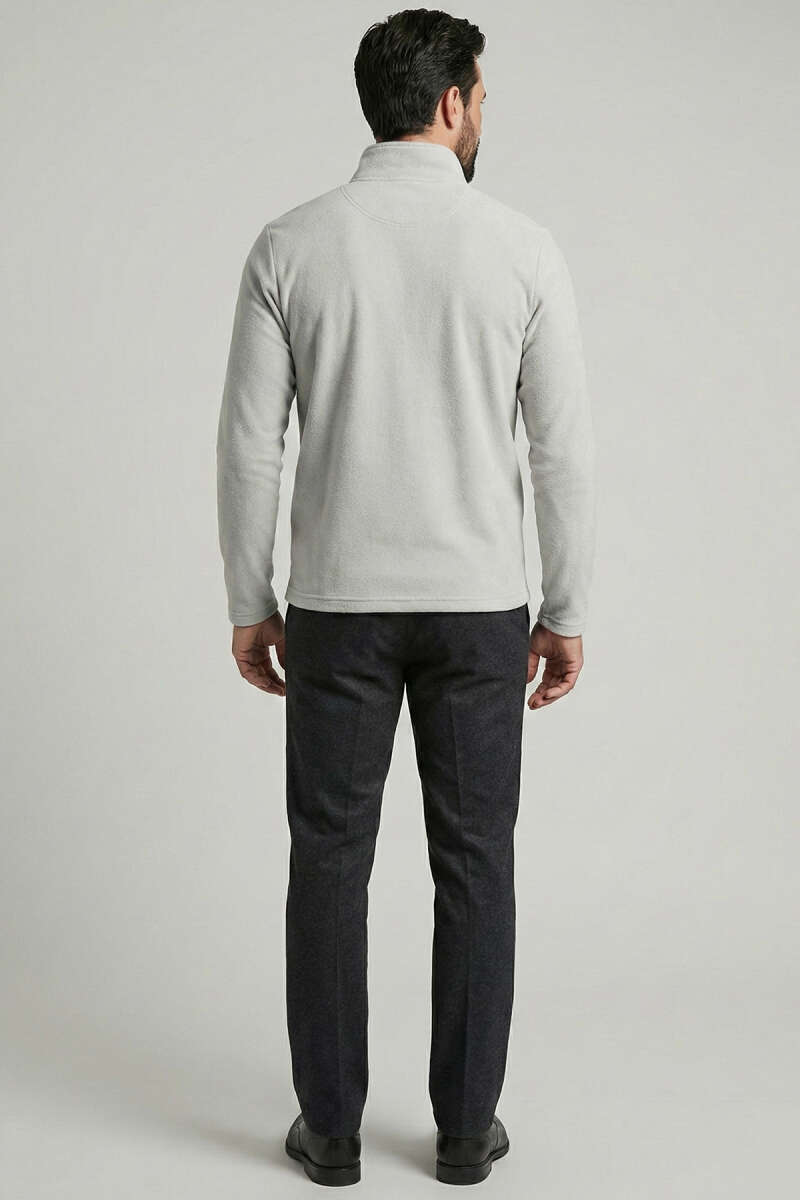 Dik Yaka Yarım Fermuar Erkek Sweatshirt Gri