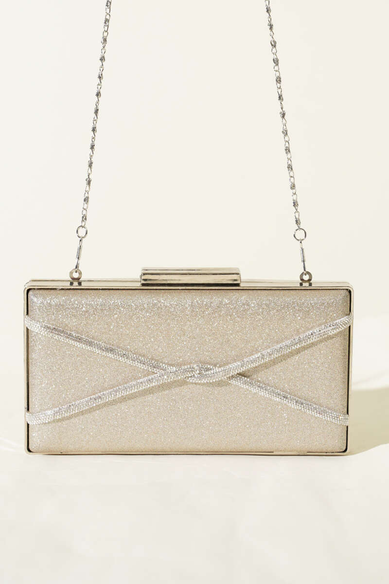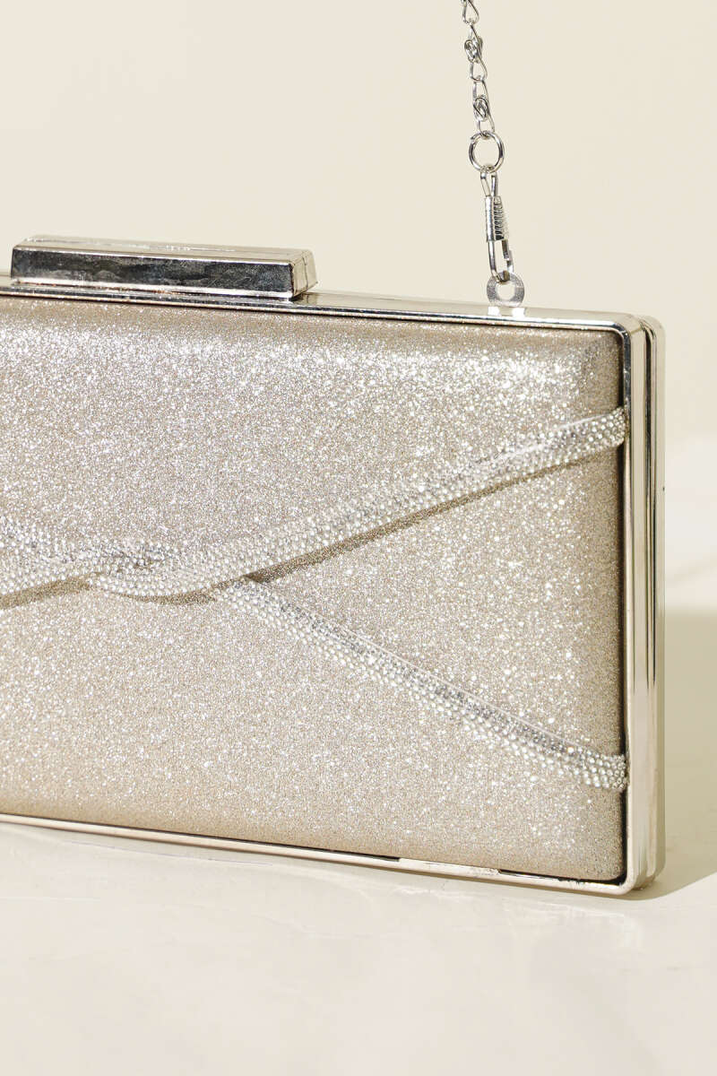 Dikdörtgen Çapraz Simli Abiye Çanta Gold
