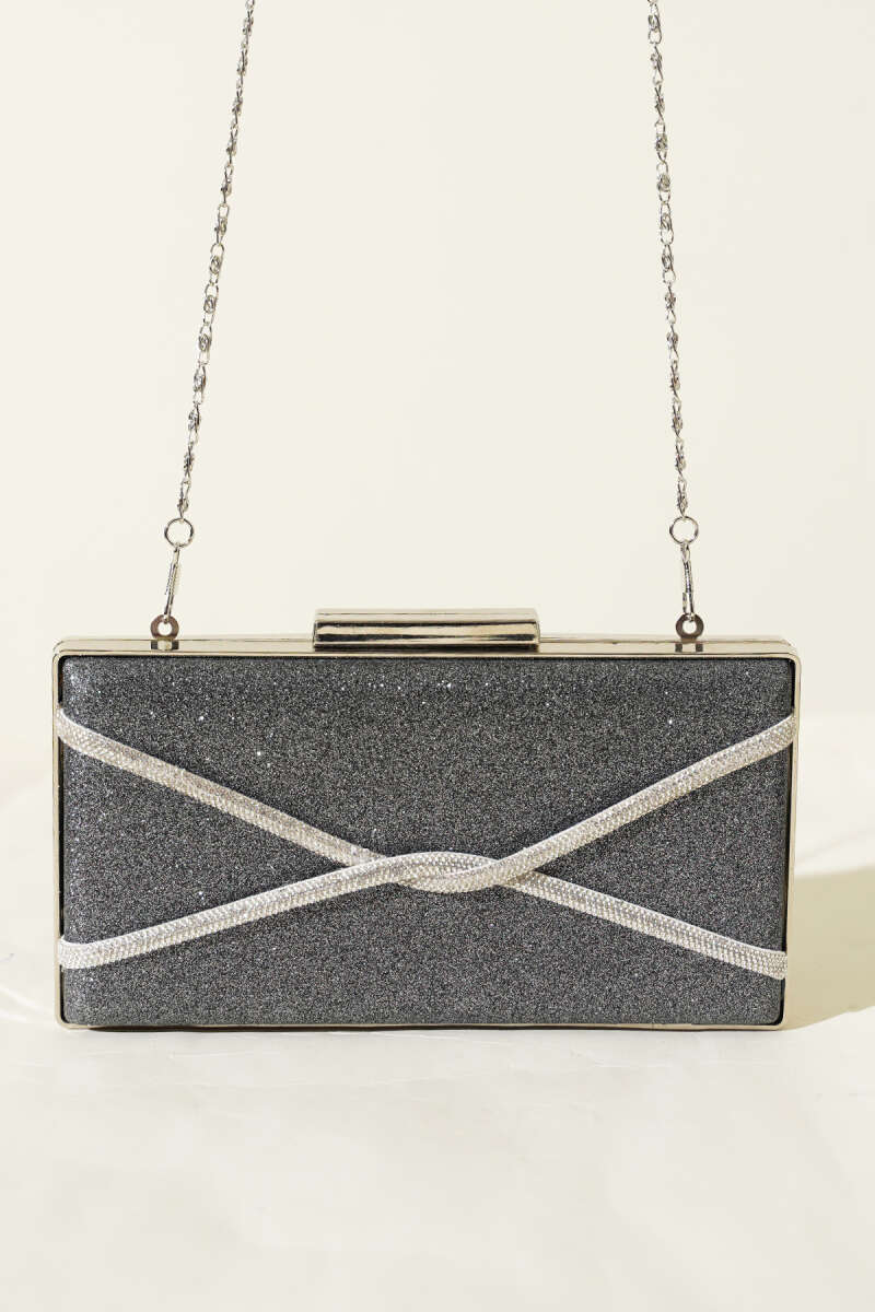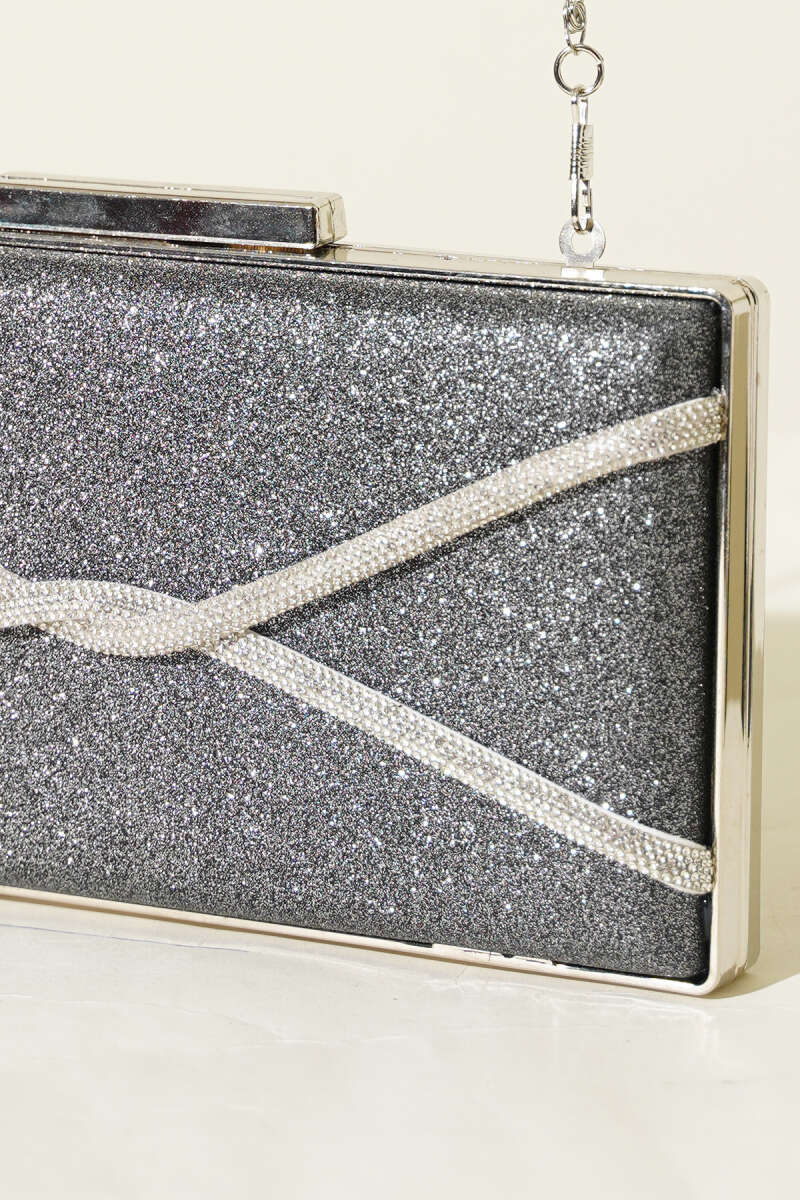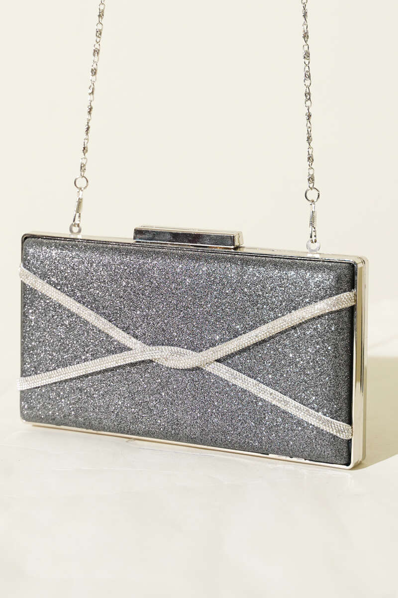 Dikdörtgen Çapraz Simli Abiye Çanta Füme