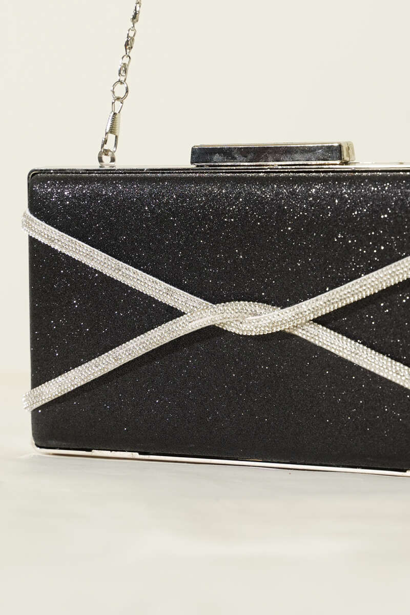 Yüzüklü Simli Abiye Çanta Siyah