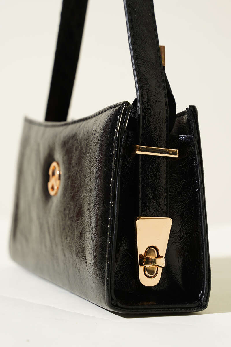 Tek Kemer Detaylı Rugan Çanta Pudra