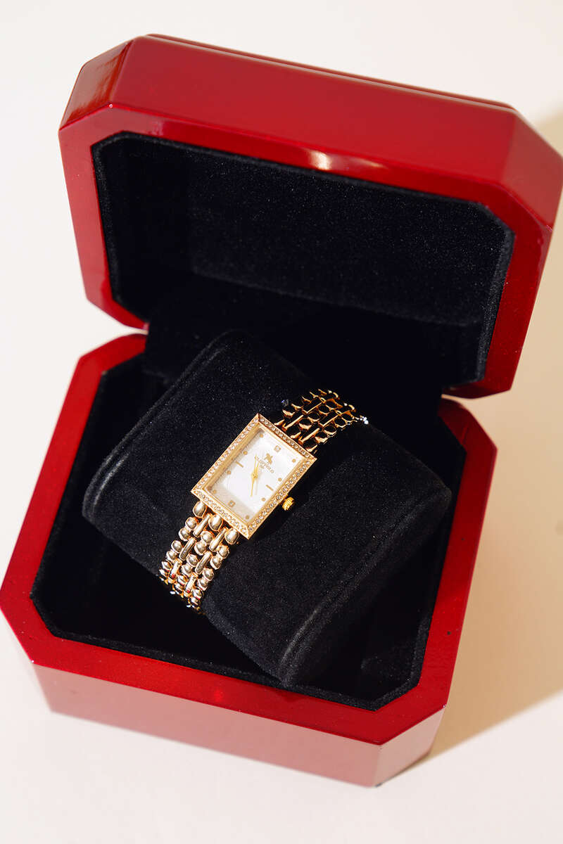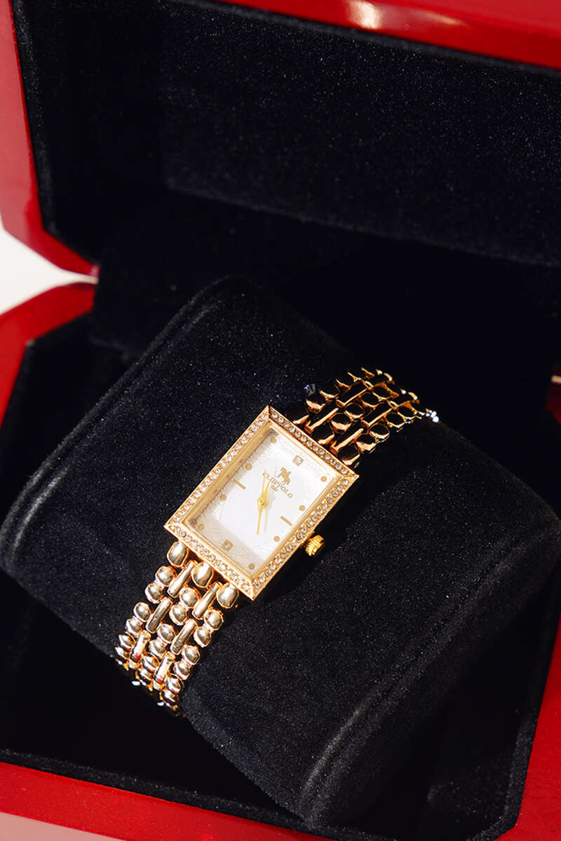 Dikdörtgen Taş Süslemeli Kadın Saat Gold