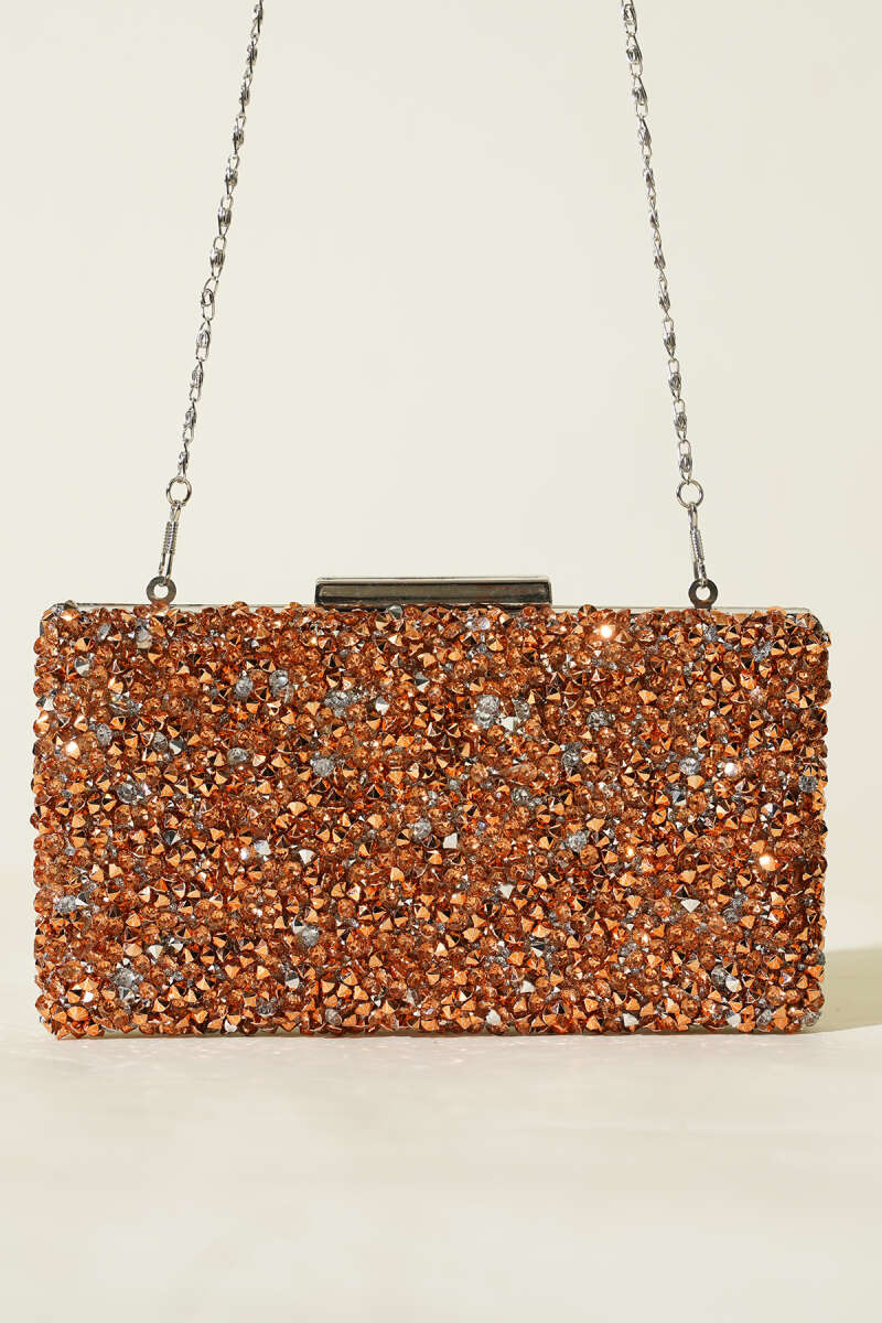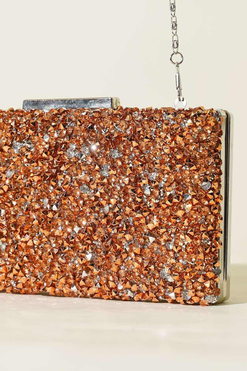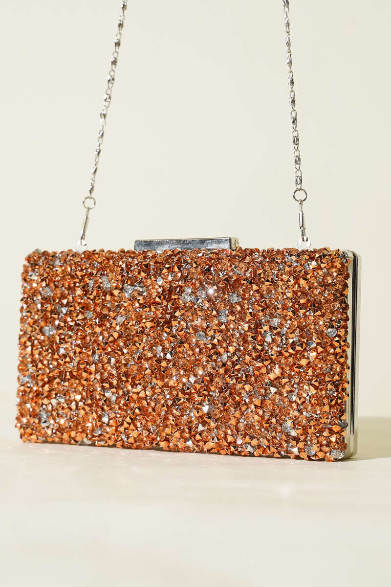 Dikdörtgen Taşlı Abiye Çanta Bakır
