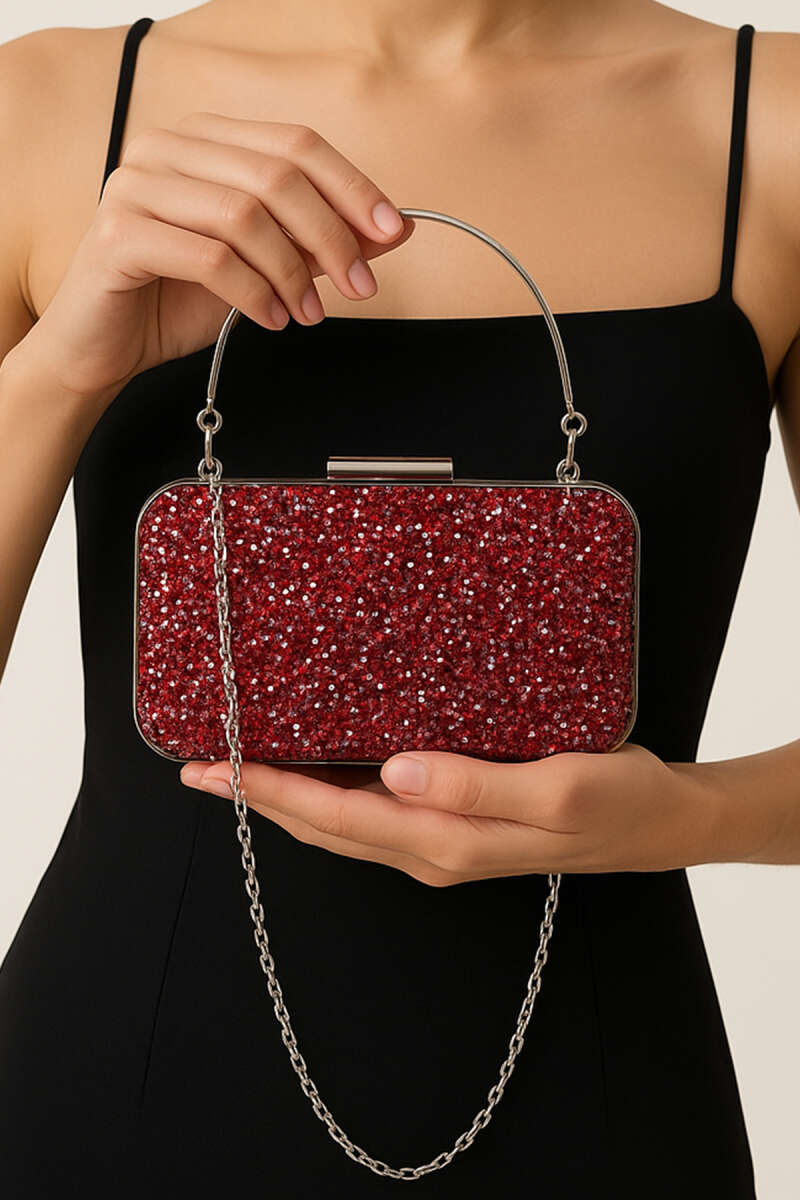 Dikdörtgen Taşlı Kulplu Abiye Çanta Kırmızı