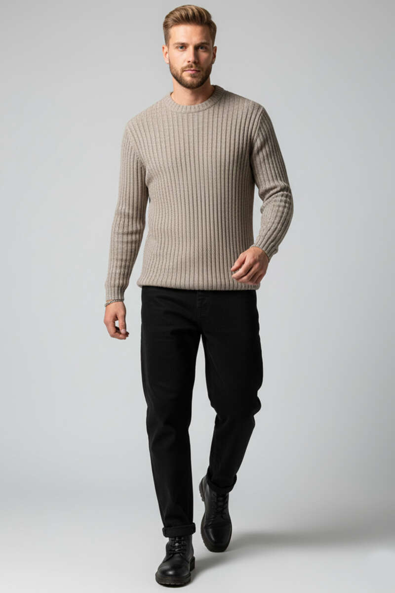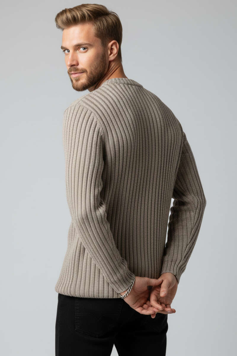 Bisiklet Yaka Basic Erkek Kazak Vizon