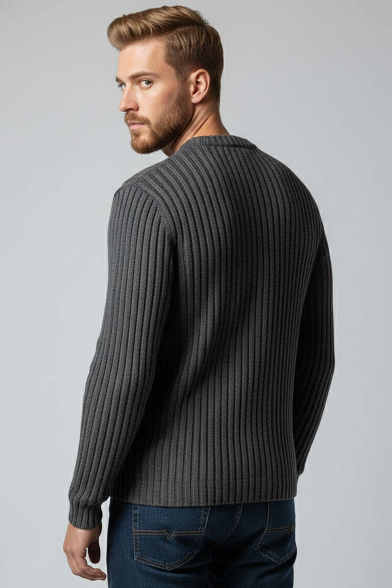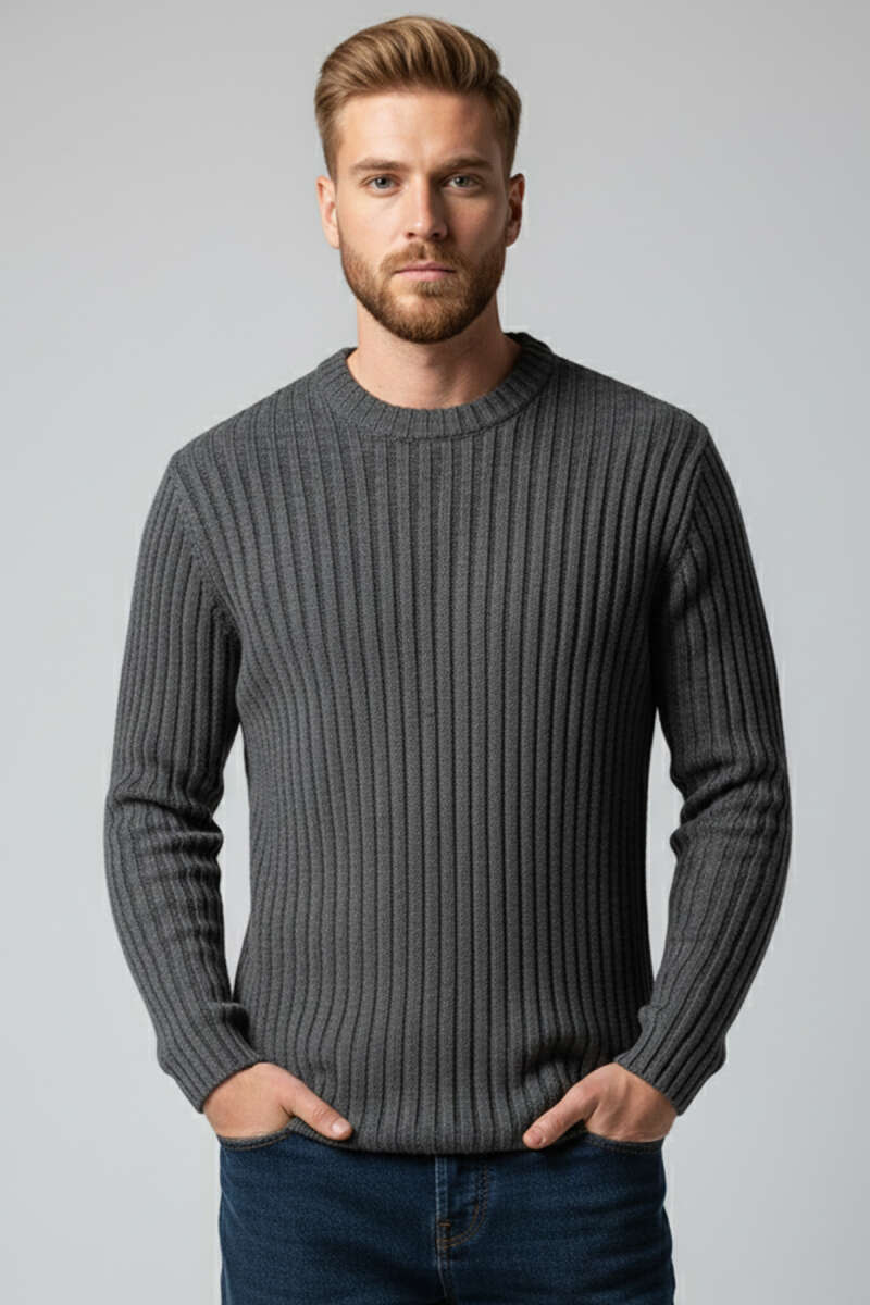 Dikey Çizgi Fitilli Erkek Triko Kazak Gri