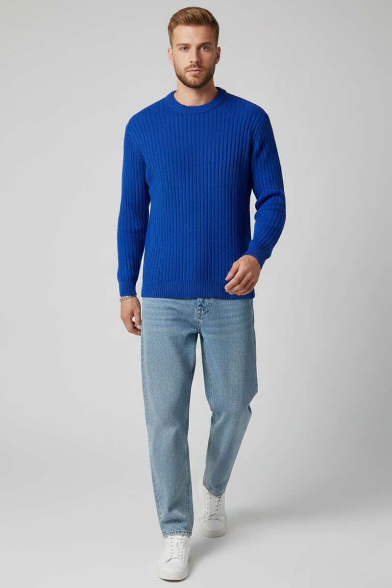 Tam Balıkçı Erkek Triko Kazak Lacivert