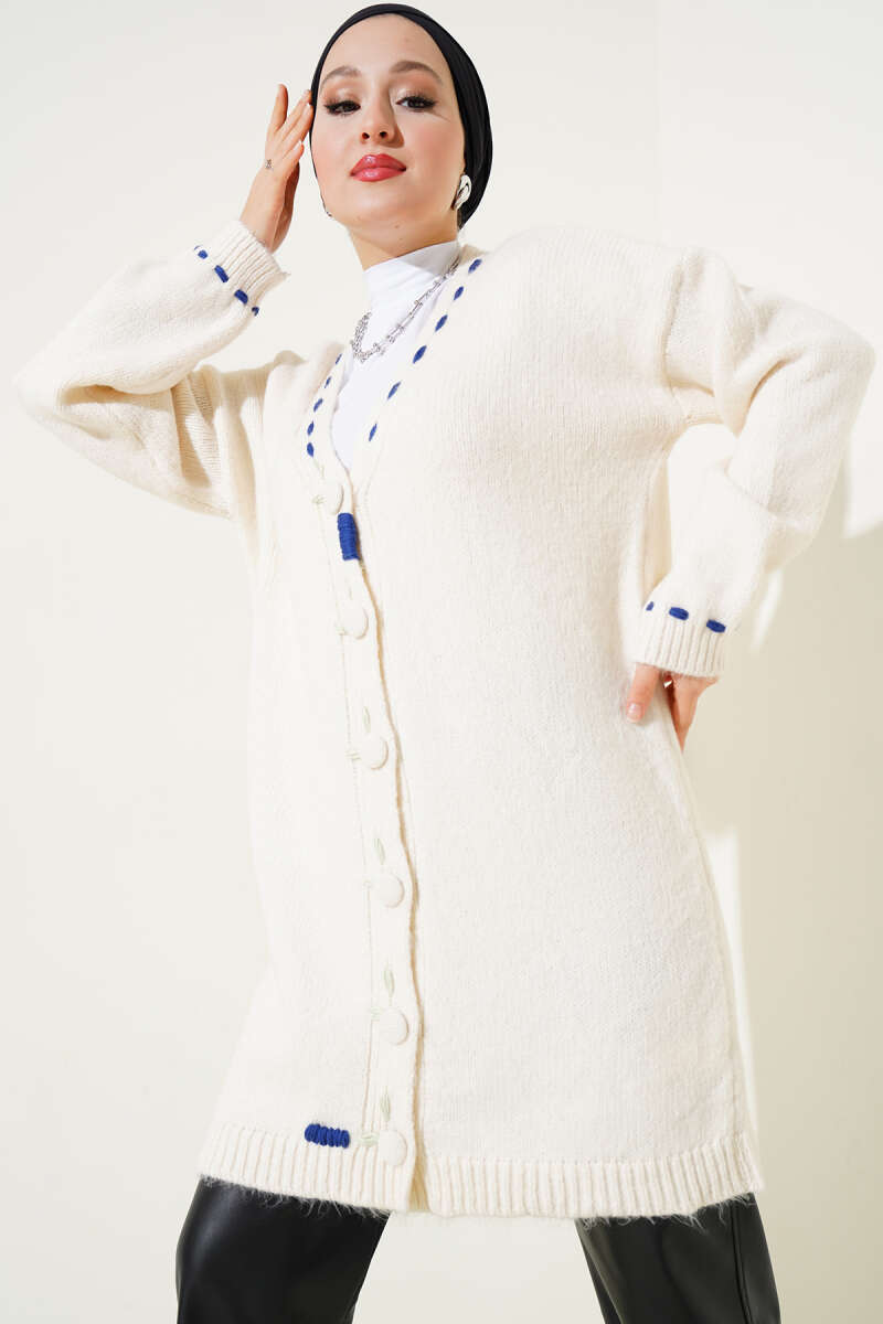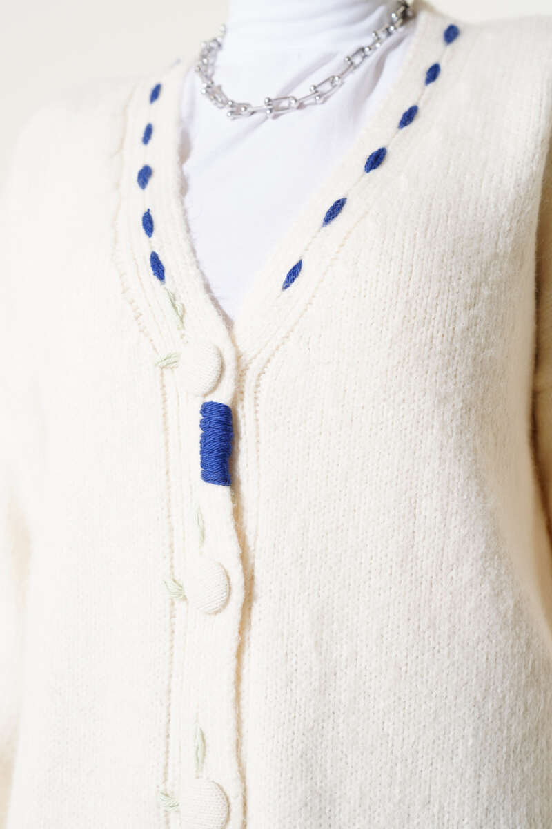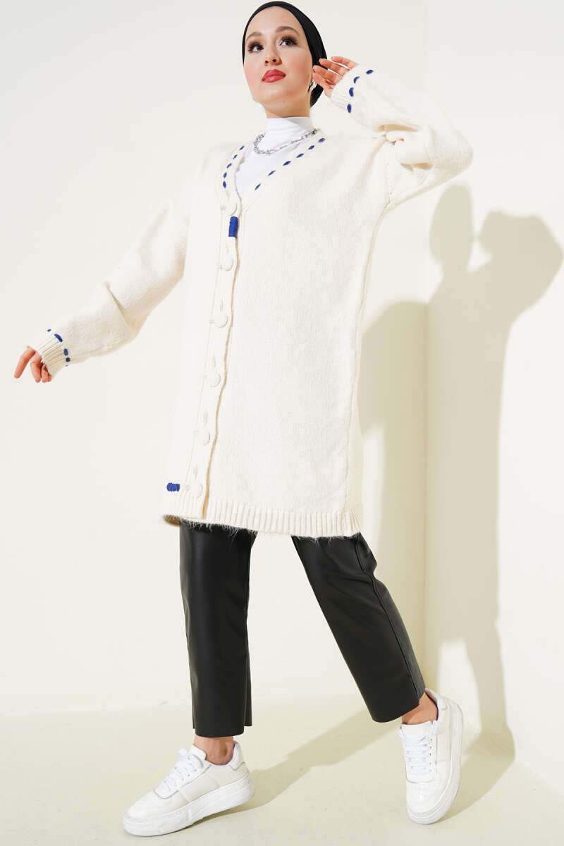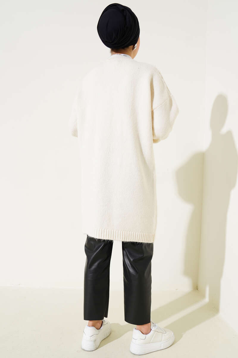 Pirinç Örgü Basic Triko Hırka Krem