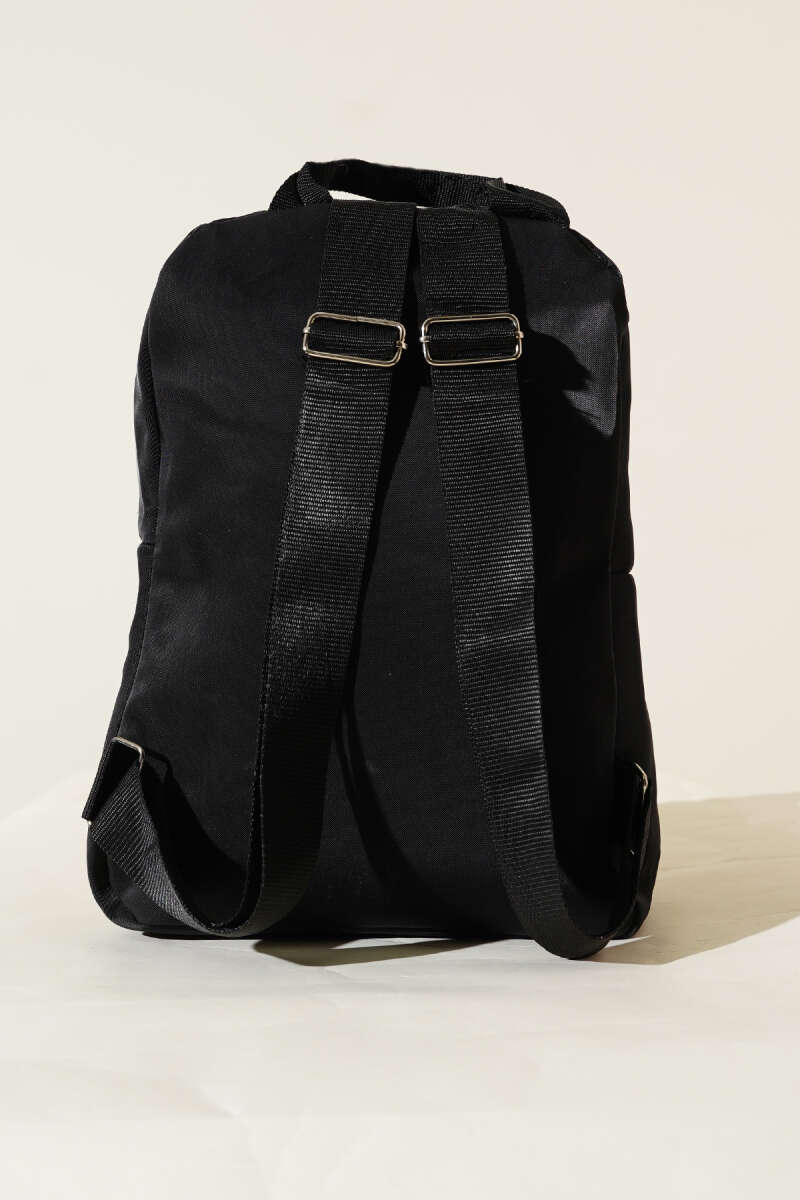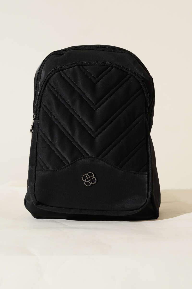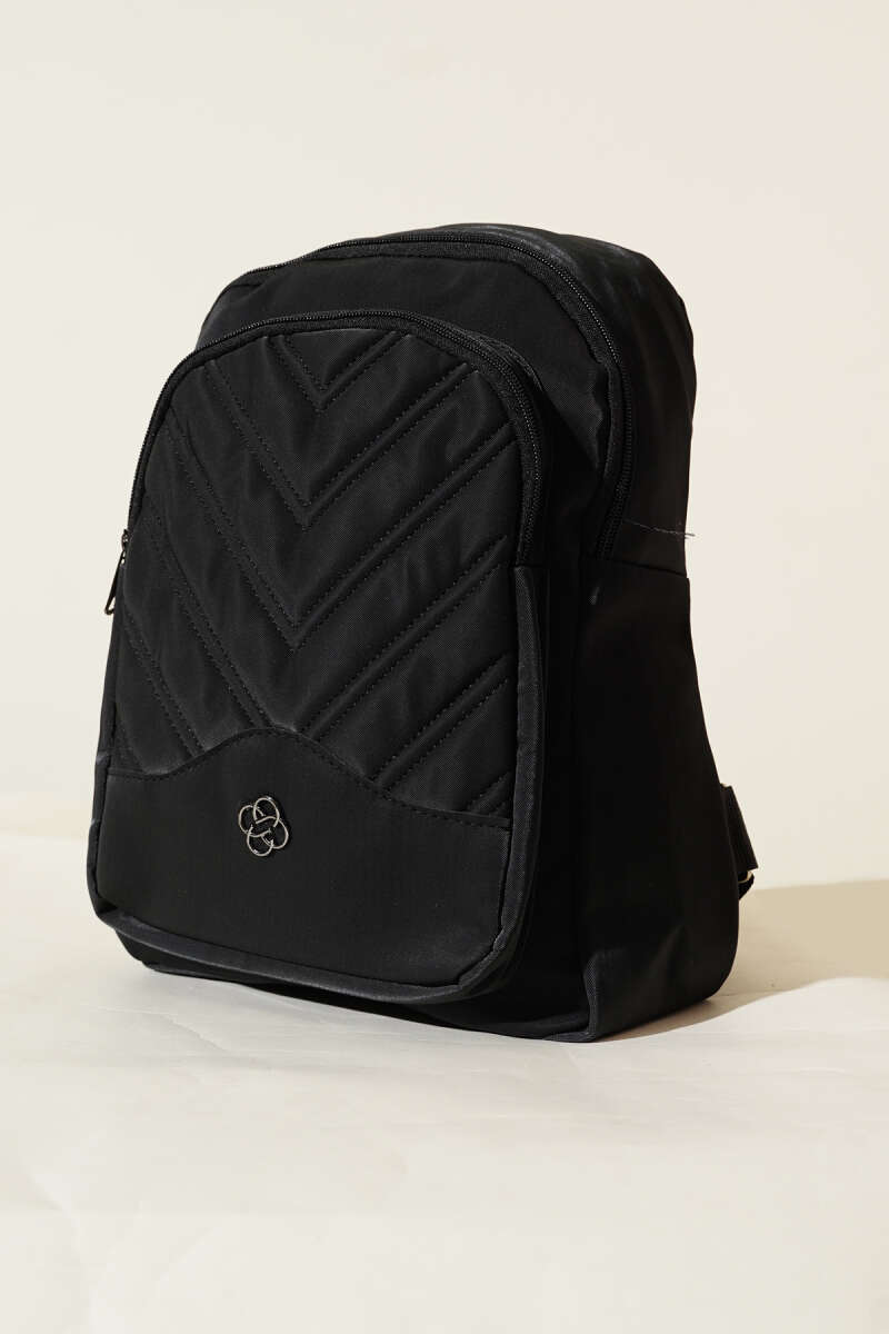 Dikiş Detaylı Çift Fermuarlı Sırt Çantası Siyah
