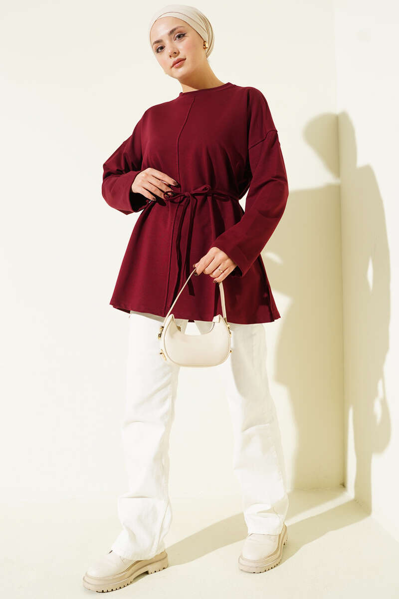 Üç İplik Yarım Çıtçıtlı Sweatshirt Bordo