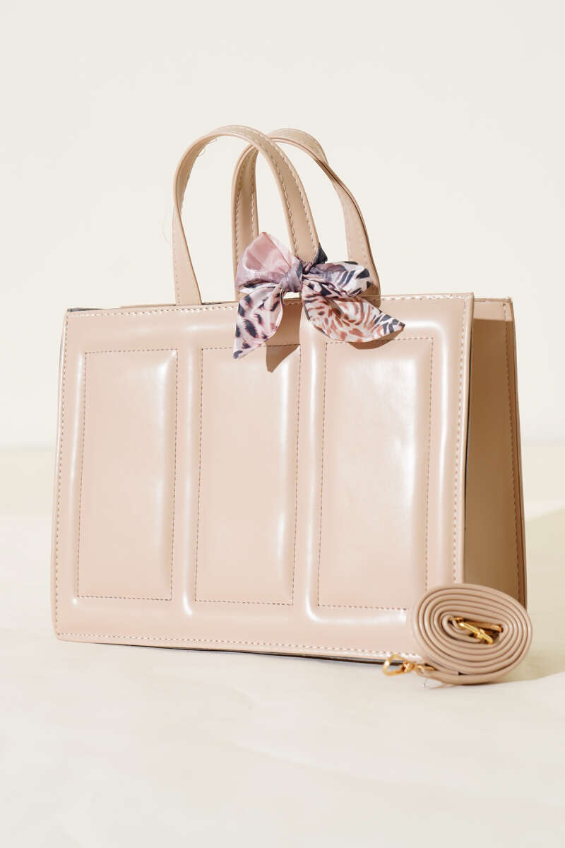 Kilit Detaylı Kenar Dikişli Çanta Taba